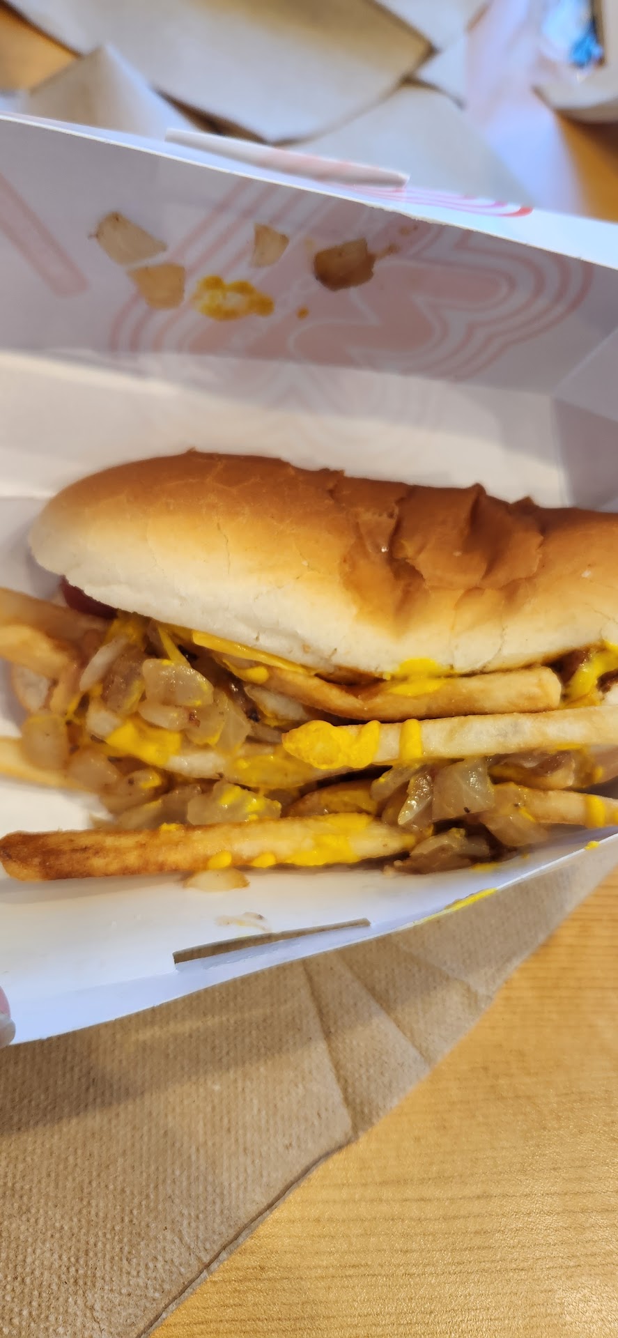 Read moreBusy, busy place. They were overwhelmed with all the customers, and it took FOREVER to get our order. They did thank us and apologized for the delay. The hot dogs are good but not very big. Jalapeño bites were ok, nothing special. Same for the burritos. The best part of our order was the fries...with chili and cheese and also plain. Thin and cooked perfectly. This place is pretty far from where we live, so we may not go there again for a long time. But if in the area, we will stop by and get another...