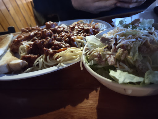 A quite night to swing in for dinner. Good options for dinner at a bar. Much larger inside than it appears outside. There are also pool tables and a beer garden which may be wonderful when it warms up a bit. We ordered gizzards which were a bit over cooked but had a good breading on them. The special of the night was spaghetti which included side salad and Texas toast. They also threw in a lasagna roll. The spaghetti was a surprise by having pepperoni, sausage and hamburger in it! We also had the philly cheese steak which had perfectly cooked peppers, onions and even mushrooms! Everything was good and we will be sure to come back to explore more...