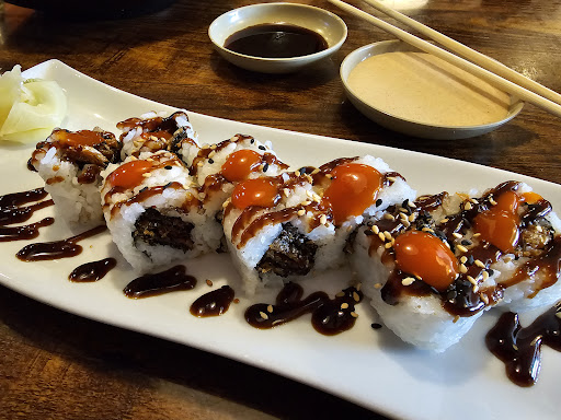 Almost 17 dollars for a fusion roll that had a forkfull of seaweed salad in the middle, and absent of the bbq eel (the reason I ordered this roll in the first place, and our little girl's roll ($12) was over-fried, burned, and spongey. She ate it and loved it because she came hungry, but left still hungry even after my husband shared his overload of fried rice (he ordered STEAMED rice and we were charged the extra $1.50 for the fried rice that was snuck into the order) with our girl and myself. Toke, pay attention to your guests and what they come to pay you for rather than fill all the to go orders for people that haven't...