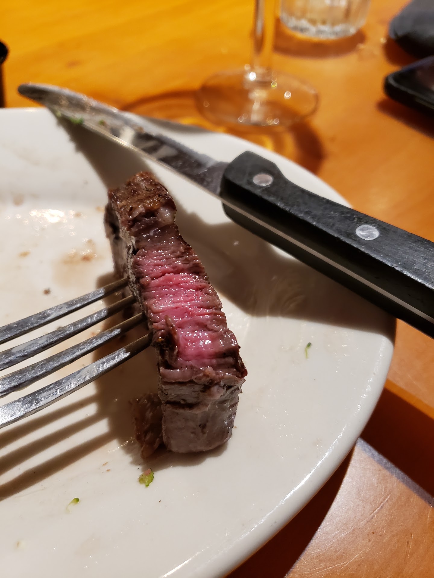 Read moreWhere to start... I made a reservation for 2 at 8pm for our 14th wedding anniversary. We sat between 2 booths with a handful of people. Our waitress' name was "Holly S", at least that's what it said on our receipt. The only time we really saw her was when she took our order. She was more worried about the other tables around us. We ordered the Tamahawk medium. Right off the bat, the order is over $100. You'd think we ordered off some kind of value menu with the way we were completely ignored when seated. It took forever. Trying to flag down our waitress for more tea was a nightmare. When we finally got our steak, it was extremely overcooked. She kept smiling and nodding her head as if I would happily agree that the meal looked great. No ma'am. Not on my anniversary. When Holly asked how our food was, my wife began telling her that the steak was over cooked, but not before Holly interrupted her to (AGAIN) tend to her other tables. She went to the table with more people to make sure THEY were taken care of. I told her I would like another steak medium at most. Then, we had to wait another 30-40 minutes for the cook to make another streak. Extremely frustrating. Again.... trying to flag down our waitress for something to drink was like trying to pull teeth. Our sides were good. I will not complain about them. But when our steak finally arrived, our server thought she would bring out another order of sides (as if it would make the situation fine). The 2nd Tamahawk was great. But still the entire time, our waitress was nowhere to be found. When I would try to flag her down, it was very short answers followed with a side eye. When I asked the service assistant for some boxes because I was ready to go, she stopped rolled her eyes and left quietly. Pardon for asking for assistance, but if our server was around, I would have asked her. Very unprofessional. What was worse, when the other 2 tables left, Holly was trying to crack jokes and make us laugh (no doubt to ensure a tip). Sorry. I lost interest a long time before. Now, at this point (thinking over the night), I did not think the $60 cash that I pulled out was an acceptable tip. I wasn't planning on leaving anything, but my mother raised me better than that. So, I still left a little something for Holly. Worst 2 hours "celebrating" our special day. Thanks,...