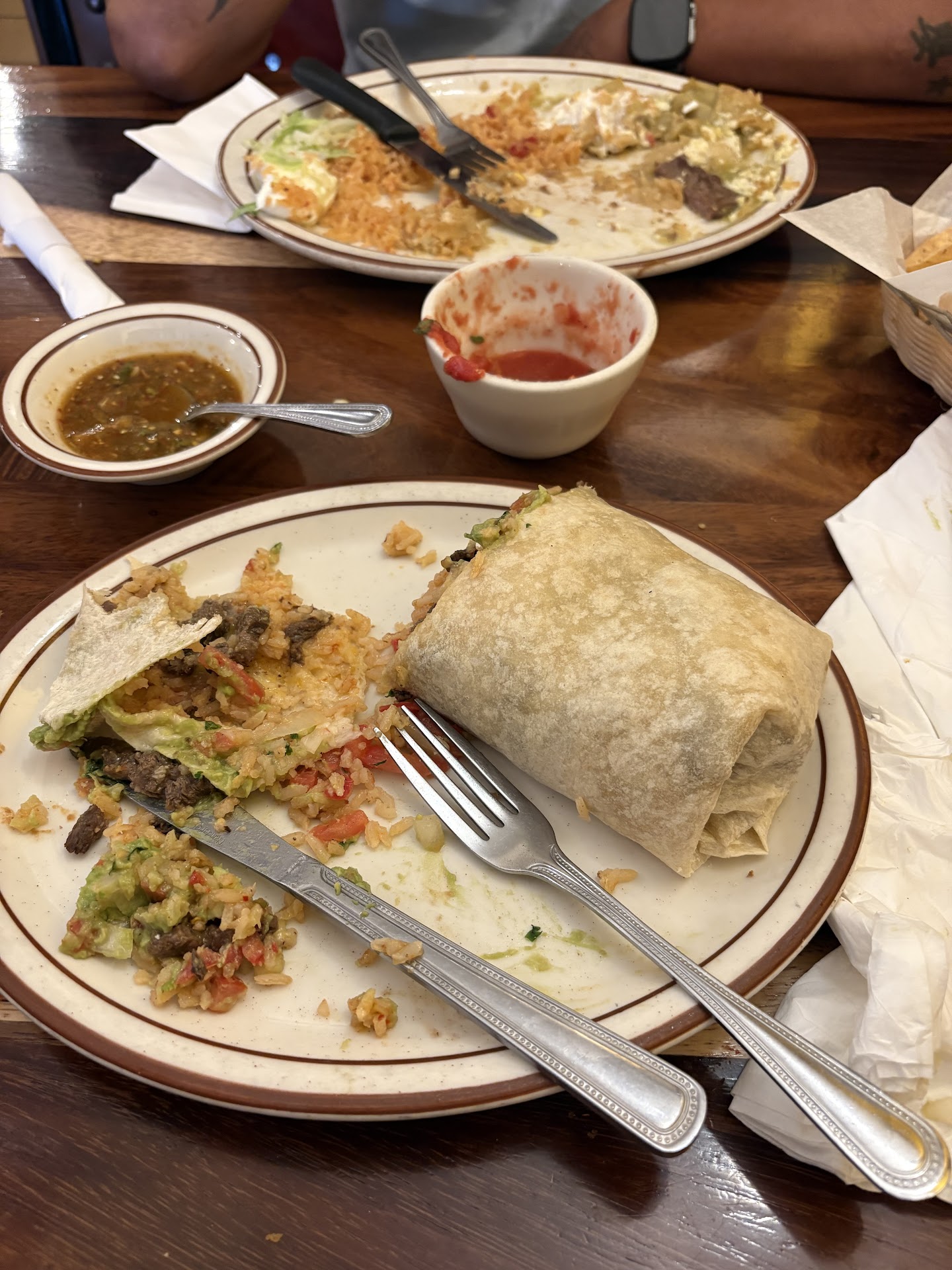 Honestly idk how you guys have gotten all those reviews unless they r fake. My husband and I came here for Fatherās Day based off these reviews and honestly we were both very very disappointed. First off. Our server looked angry from the start bringing out our water. Then she had us waiting 15 min after we told here we just need a couple more minutes because it was our first time there. Then we had to flag someone else down just to get them to call her to come back to take our order. Then I asked for the carne asada burrito and no beans then I asked what all comes inside and she said just beans and meat. And I said ok so if I get the burrito without beans itās just meat and tortilla?? Made no sense why u guys would a plate that cost more just to have the rice on the side. So she said well tell me what u want inside and we will put it inside, do u want everything on the plate inside? I said ok yeah sure. And add cheese. Iām pregnant and starving by this point and they finally bring our food out. The salasa wasnāt that good on my husbands chilaquiles, also the asada was either rotten or close to it but I felt extremely uncomfortable eating the quarter of the burrito that we got. So more then half went to waist and my husband was also so disappointed with the service and food to top it off he is a first time father now here soon in two months and I wanted this meal to be decent and we left very unhappy. Our server is lucky he is nice cause I honestly told him not to tip her anything for her attitude and then I changed my mind as well and we left her $5. So a total of $50 for nasty food that was probably bad and risked me or my baby was hi is unborn getting sick. Waist of our time and money and we will not be coming back here ever. Excited for Taco Los Cholos to open because at least we will have good food there every time and we are not...