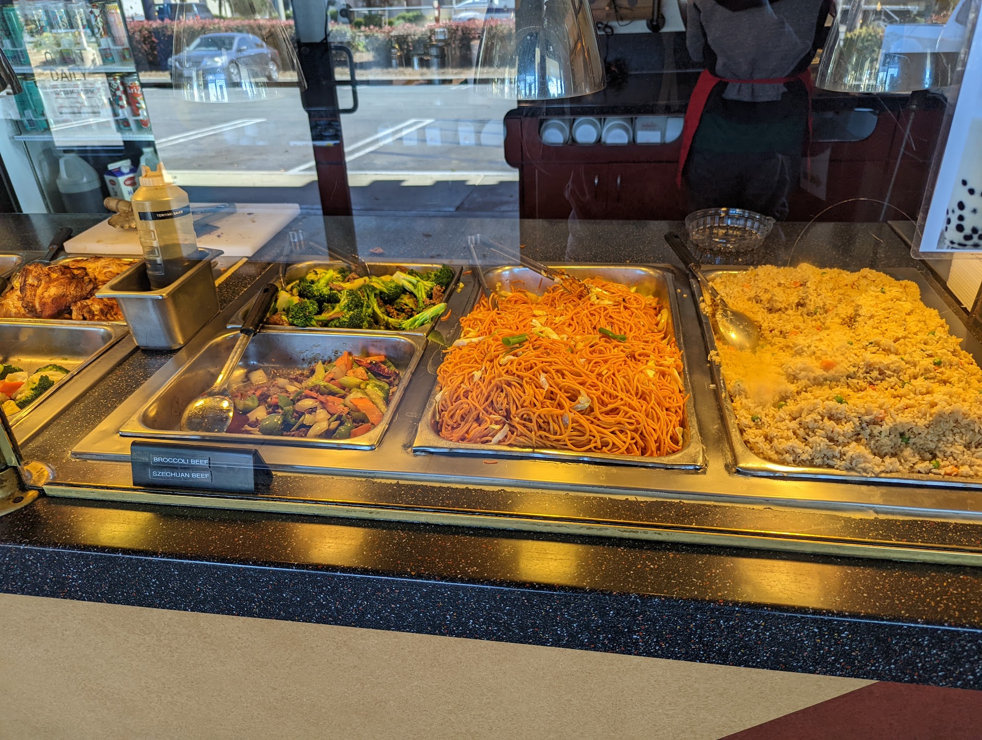 This is my go to quick Chinese steam table spot, because its close by and reasonably good. I usually get a 2-item with fried rice. The orange chicken is good (though I do prefer a fresh Panda Express). Its more sweet than usual but it has good flavor. The broccoli beef is good, and they are usual mindful of giving a good mix of meat and veg. I sometimes get else if it looks fresher, like jalapeno chicken or mushroom chicken.
