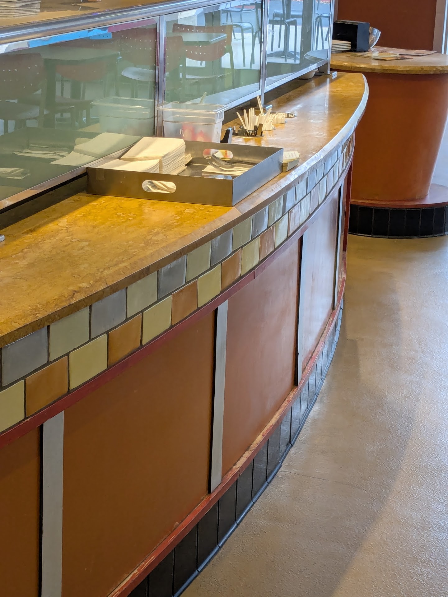 I got my food, but no napkins, silverware, etc. No problem. I got up to get my own from a customer facing tray full of napkins, disposables forks, knives, etc.