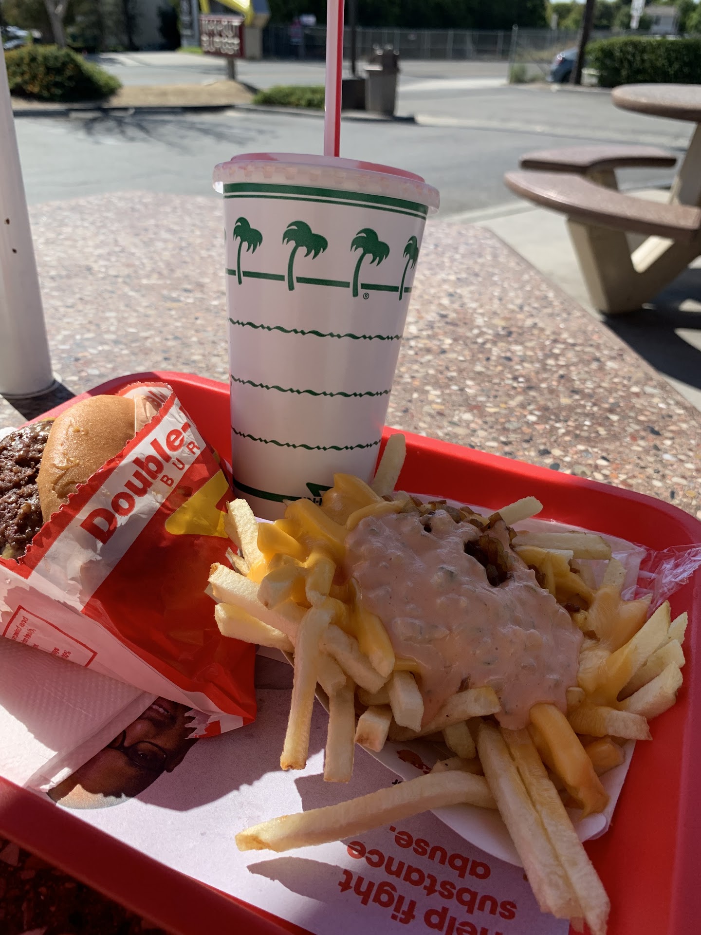 I ordered a double-double and animal style fries because I like to live on the edge (of a heart attack). The lettuce was crisper than my wit after a double espresso, the tomatoes were juicier than a gossip columnist, and the special sauce? Oh, the special sauce. It's like a secret handshake between your taste buds and pure, unadulterated joy. ( I ate my napkin)