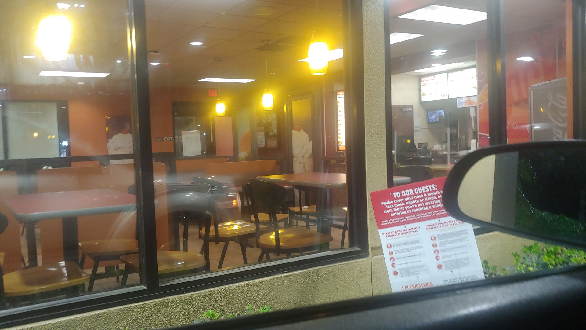 If I could give no stars I would because the service was horrible. I get off work from ANOTHER JACK IN THE BOX 'mind you, and get home to my girlfriend who is feeling unwell. Like a great provider I asked her what did she need and want. She asked if we could go to Jack's for breakfast. I happily drive to the closest Jack's and to my dismay find it closed. My girlfriend being a little discouraged was reminded by me that we can check Google. So spending a little time trying to find one we find this location. Around 6 in the morning Friday February 11th we "ring the bell" to order. There was no friendly greeting just straight to the point. " what do you want? " a young ladies voice barks out the speaker box. We place an order for a meatlovers burrito except for one complication. My girl likes the hashbrown inside and doesn't want the sausage. So I asked the lady to place this order. I understand being in a rush or washing your hands and putting gloves on to follow food safety guidelines that Jack's is very strick on is hard to do while taking orders so I clarify the lady can take her time. I would rather have a slower and friendliness all around then a rushed and rude experience. Hoping this is the case because I explain the order and do not see it on the screen. The young woman yelling back that she substituted the hashbrown in with the sausage, but when I looked on the screen the indication wasnt there. Just a full charge for a hashbrown. Understanding that I'm getting horrible customer service and my girlfriend simple requests being clearly and blatantly denied I try and calm her down. I told my girlfriend I don't mind paying full price. As long as food safety guidelines are followed and the order is correct. I've been new and didn't understand the system even though I was properly trained and watched the videos. It takes a while for someone who is new to get with the program. The order was continued with my adding in a loaded breakfast and that was it. I get to the door and the young African American woman is NOT wearing a mask. Had no gloves on and opened the door to take card. Didn't even repeat the order. I turned to my gf because she asked me a quick question and before I could hand the card to the young woman she slammed the sliding doors in my face. I have never seen such a sad and miserable person work at a fast food "customer service" profession in my life. She gave us nothing but attitude and when I asked to speak to the manager she laughed and said " idk how long it'll take so you can wait " I understand having a bad day, but that level of disrespect and that kind of behavior was so uncalled for. I honestly wrote this review in hoping that the people that live with this young African American woman can take pity on her. Must be hard waking up every day hating yourself that much that you have to treat complete strangers with such hostility. Show this poor soul some decorum, because...