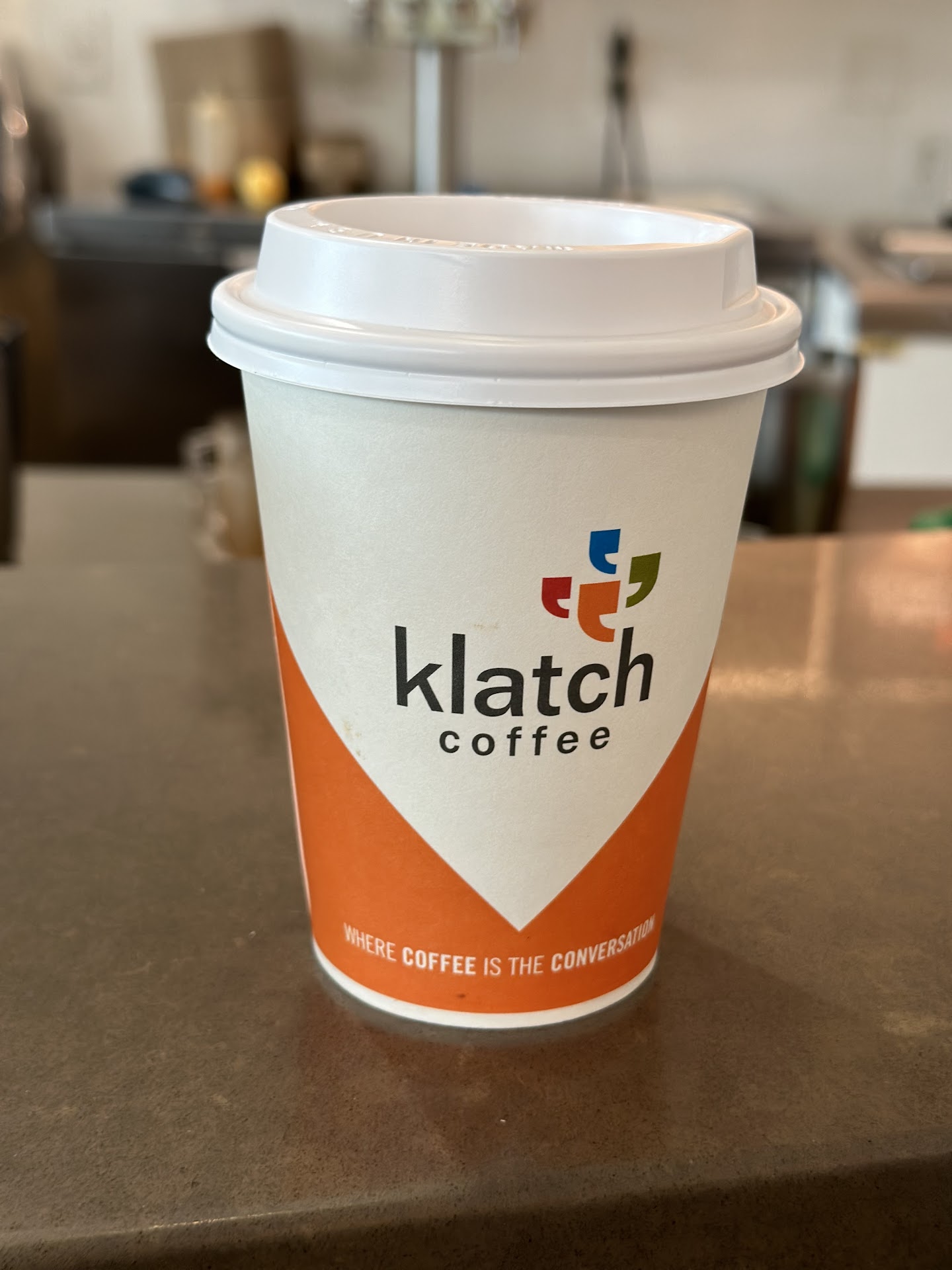 On May 15 around 2:40 PM at Klatch Coffee curbside pickup, I waited over 20 minutes for my order (only 2 drinks and a toast) after checking in — only to be told I hadn’t checked in by KAYLA.