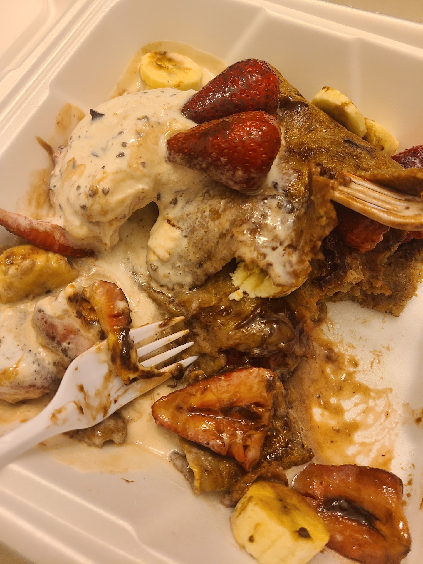Honestly, I rarely write any reviews, but this time I just had to. I ordered a crepe at this location, it took the girl almost 30mins to make it. Yes, my fantasy waited 30min for a crepe, but that's only because I had ordered dinner from the place next door and that's how long it was gonna take for my dinner to be ready. Anyways, point here is that not only it took the girl 30mins to make my crepe, when I finally got it, I went home excited about it and that thing was more like a Pancake folded so thick, with barely any Nutella in it. It was disgusting, it tasted like nothing but flour, no flavor whatsoever and to top it off I paid around $8-$9 just to ended up in the trash. The girl should of just told she didn't know how to make them, and I could had ordered something else instead. 🙁 Anyways, if you go here, don't...