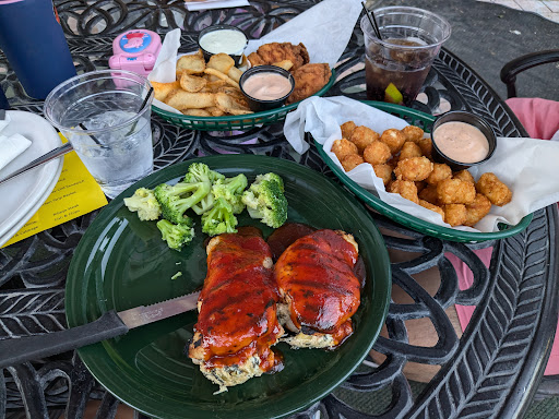 Got a full stuffed chicken meal and a kids meal. The stuffed chicken with their special Guinness glaze was good. The stuffing tasted like that in lasagna and the guiness sauce was more like barbecue sauce. The kids meal was a good-sized portion. Looks like there is a slight difference in the menu online (or perhaps indoor seating) and the 'patio menu'. For example the kids menu online has a side of mashed potatoes, but we were not given this option for patio seating and got fries instead. Not bad, because the fries were not the typical ones, but thinly sliced potatoes in batter. Tasted good. Kids menu also includes dessert. The brownie sundae was decadent with warm brownie, icecream, lots of whipped cream and chocolate sauce. The outdoor seating has umbrella-covered tables facing a small stage for live music during the summer.