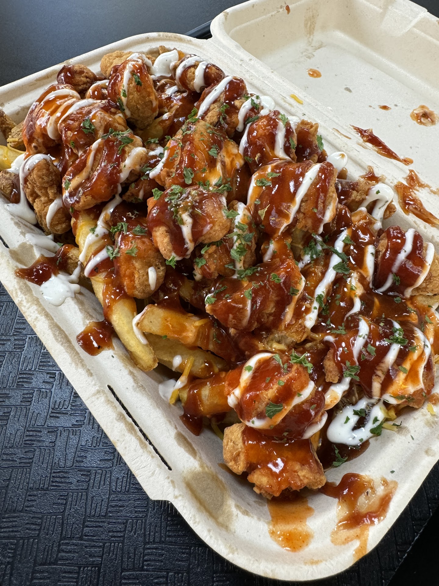 Ā Ā Ā Read moreThe cook/ host was extremely pleasant! I got in a little late to try it out and he did tell me they were about to be closing soon last night. I've been wanting to try this place every since I watched it be built. I got the chili cheese fry and I know it was made with ground chicken I believe. Staying right at the hotel next door it didn't take ming to get to my room and eat. The plate was still hot but the fries were old the cheese was lacking in cheesy flavor...Again, I was the last one. He said the grill was off and he was low on the popular protein alternatives. I ate maybe half of it and just stopped. I'm not impressed but maybe I should've got something else. At the least, came earlier so I didn't get whatever was left. Makes me glad I didn't get...