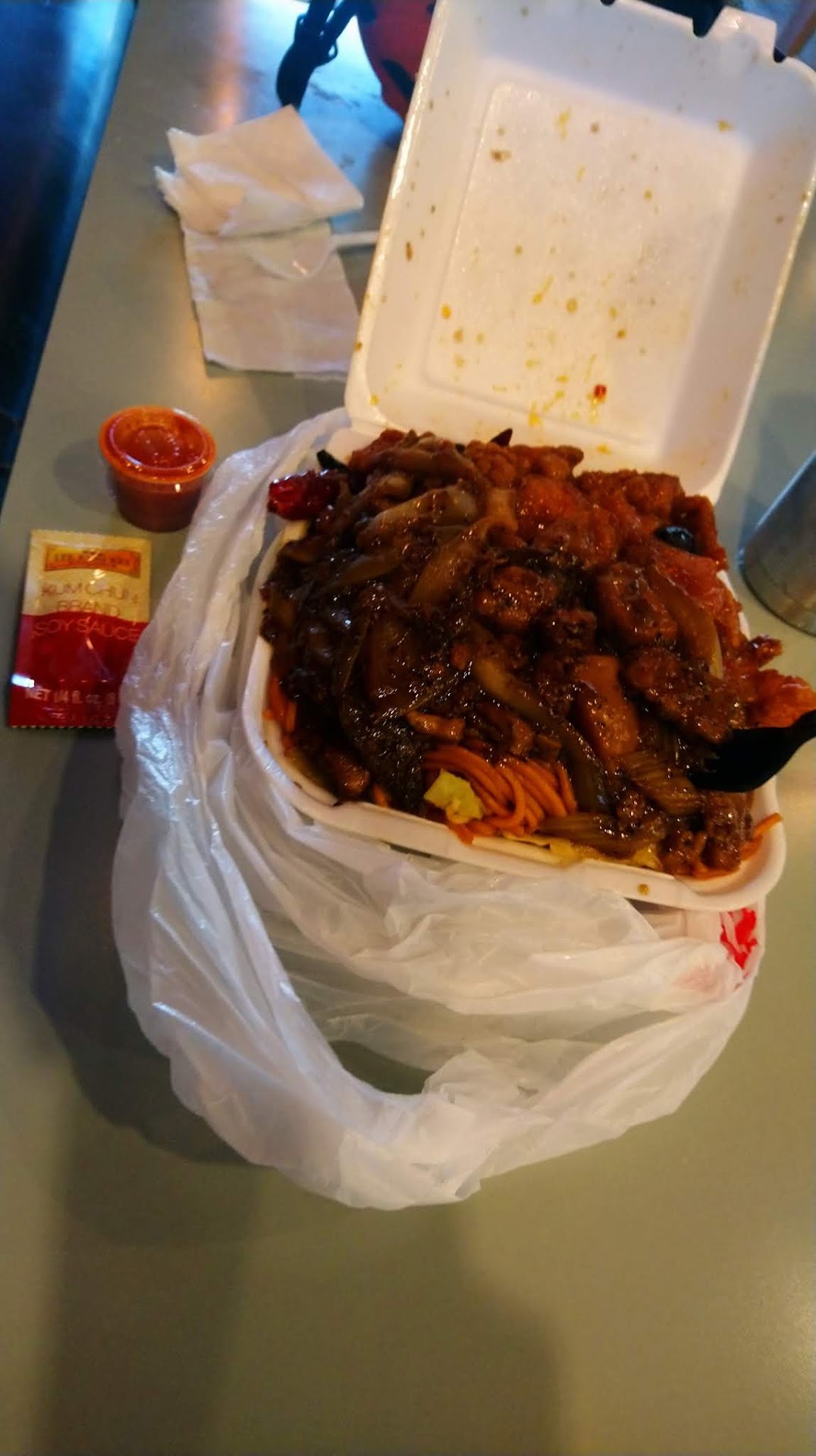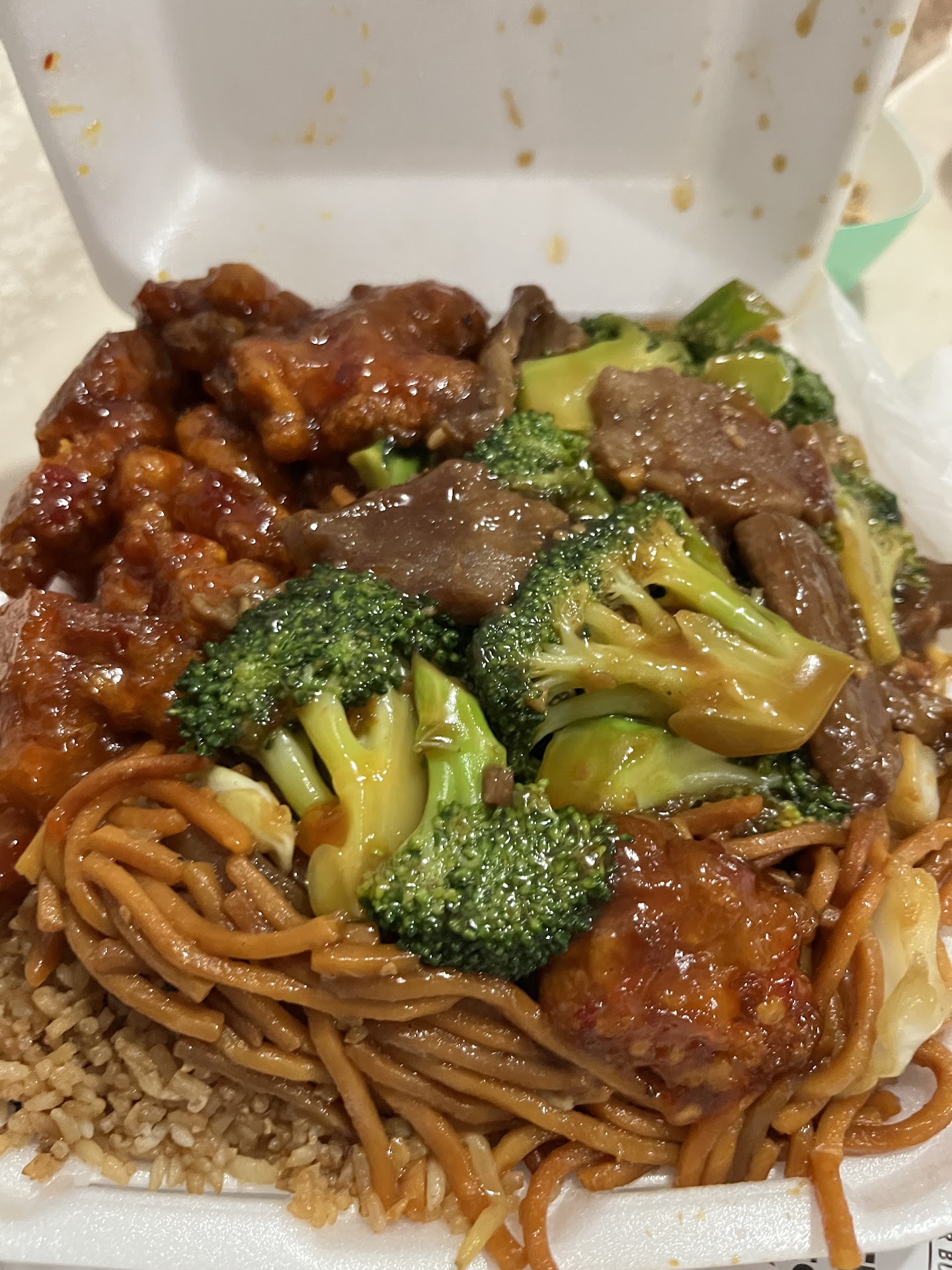 I came in around 8.15pm and this place is full of people. Long line to order, but it moved pretty quick. Also all table was full. I was like woww how good is this place. I got the Combo A. And the portion was sooo huge. I eat it for 3 meals. Lol for reals. They not skimpy on the food. And i also got the creme chesse wonton. Oh their spicy orange chicken was good too. And beef brocolli... everything that i got was so good, full of flavors.. I really like their chow mein. I think its the best chow mein that i ever tasted from other chinese food places. I can taste the flavor. Its has slightly sweet taste. But its just so good!!! And their chilli oils is made in house by the owner. Oh it makes the food taste even better with the chilli oils. Crunchy and spicy at the same time..