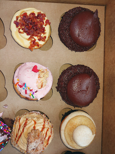3rd time at this cupcakary. 1st I didn’t really care for it. Years later I’m back again because I was in search of a vegan cupcake and they had some. Stopped by a Friday evening 2 min before closing and staff was still really nice and friendly which was surprising because I figured they were ready to go home. They were helpful and answered all questions. Unfortunately they didn’t have any vegan they were sold out they advised order they following day in the morning for pick up to ensure that I would get the vegan ones. We had the baby yoda chocolate cupcake, my son loved it! He said it was the best cupcake he’s ever had, and he doesn’t like cake or cupcakes all that much so I was surprised. I also got the ice cream filled strawberry shortcake, that was soooooo good ! In addition i got the peanut butter cupcake and the snickerdoodle cupcake which staff said was one of her favorites. If you love peanut butter this cupcake is for you. The snickerdoodle was my favorite out of those two. I came back the next day with my order I got the vegan cupcakes, strawberry, red velvet, minions and salted caramel cheesecake. I only got the minion one because it was banana overdose the appearance was cute but seemed so kiddy like. But wow that minion cupcake was so darn good I think one of the best cupcakes I’ve had in my life along with the salted caramel cheesecake those have to be my favorite out of all of them. Strawberry was good also and my friend said her vegan ones were good. The only reason why I did not give a 5 star is because when they were bagging the cupcakes the employe dropped them she said “they are okay don’t worry” well 1 hr later after getting to my friends house ready to sing happy birthday to my friend all 4 cupcakes in the brown box were smashed I was really disappointed! And one was for the bday girl. It was sad! Your paying 6$ for a cupcake and end up getting it smashed. I’m Sure it doesn’t happen often but when I go back I’d probably skip the bagging or check the cupcakes when they get bagged to...