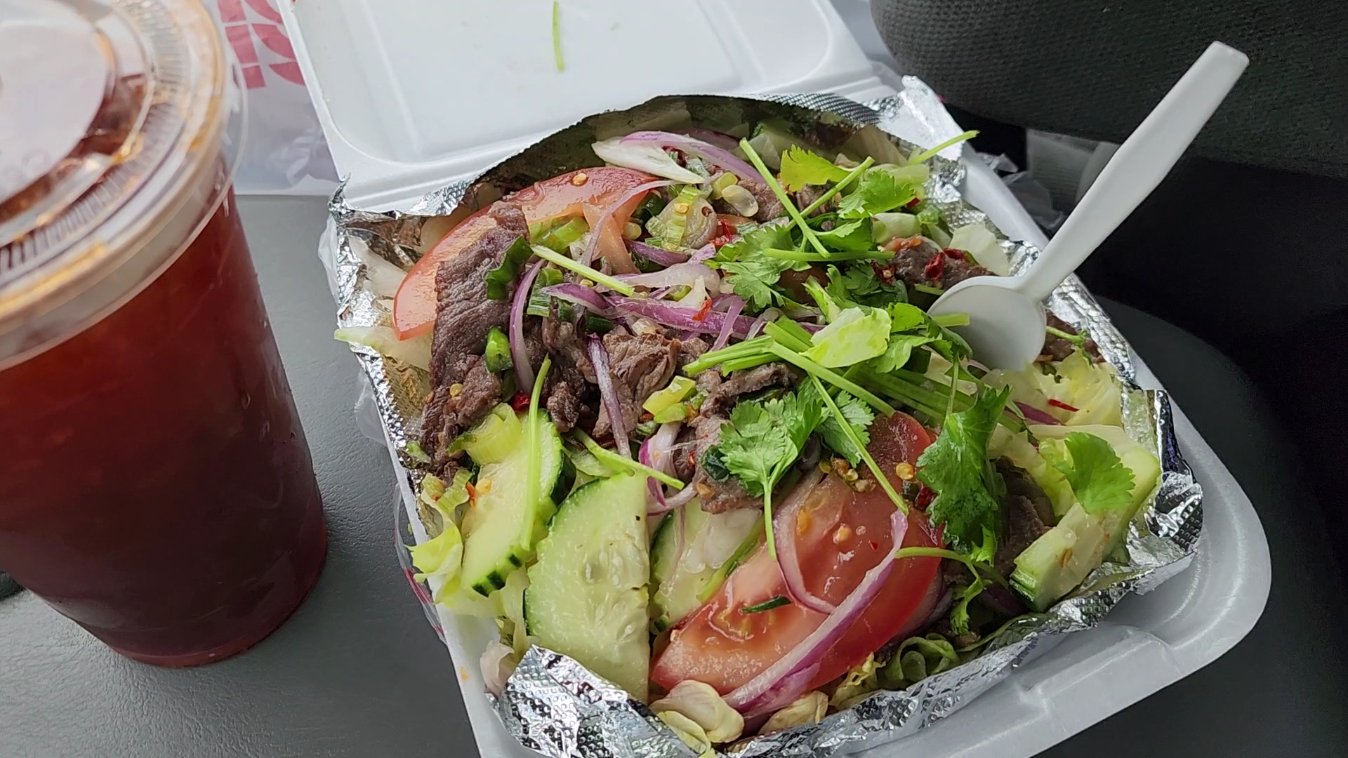 Read moreThe beef salad was really good. But be warned. The spicy chili that they put in it is spicy! My tounge was burning. For a couple of minutes 🥵. My stomach also felt like if it had a ball of fire inside 😬. My stomach was not in pain. But it just felt uncomfortable having my stomach with a burning sensation it almost felt like a fire pit 😅. For 5 hours working like that. Next time I will order the spicy chili on the side so i can eat alittle bit of it. If anyone gets this spicy beef salad remember to get a cup or 2 of extra cold water. It does taste good. But it just felt like to much fire 🔥🔥🔥. The ice tea was great! Tasty too! I liked it very much.