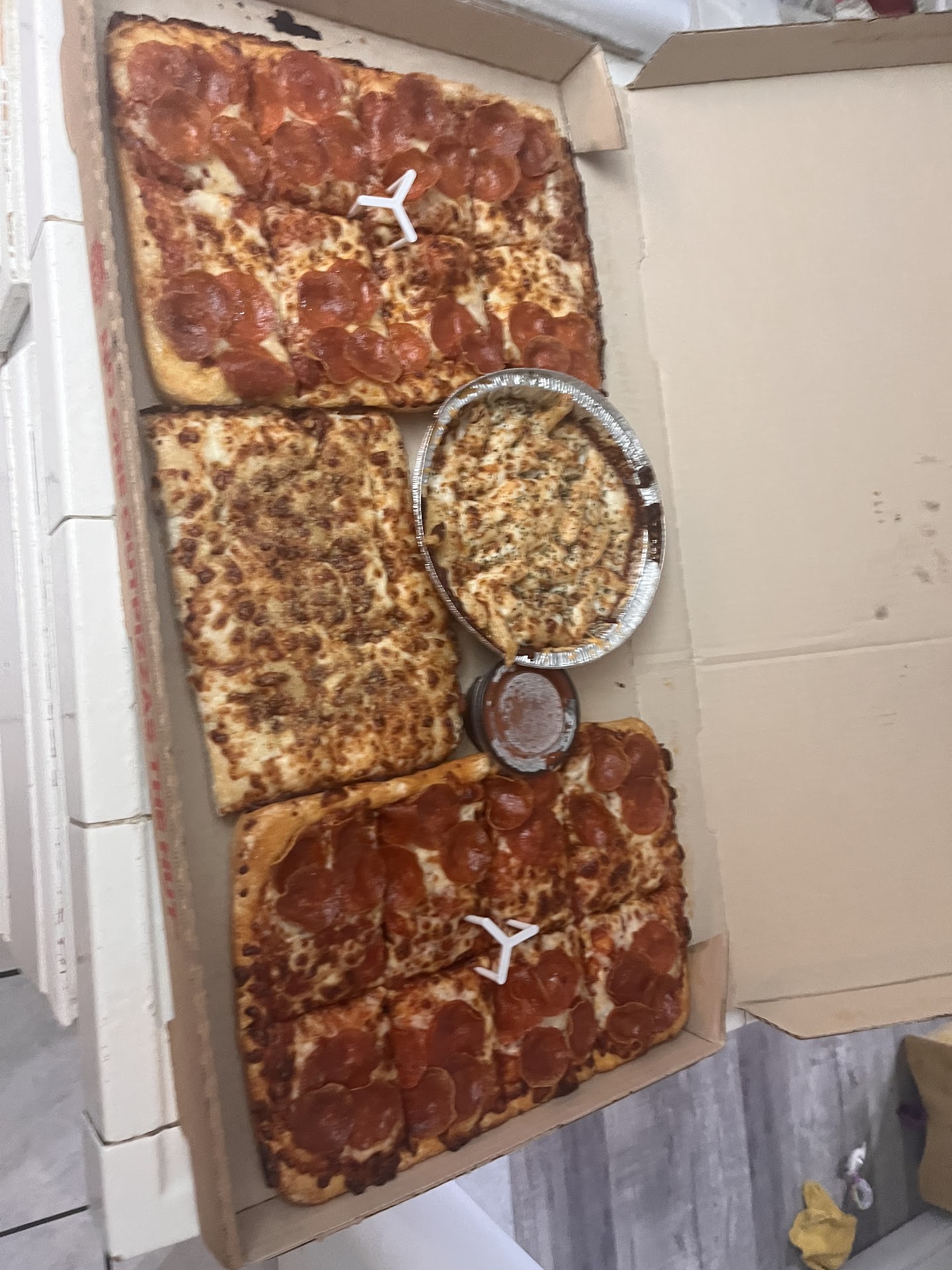 Read moreHusband and I ordered the $35.99 meal deal with two mediums and wings and breadsticks and one of the pizzas was suppose to be buffalo chicken and kids opened them in front of me and showed me and I said ok thinking pizza was fine because of the banana peppers and when I got home I realized there was litterally no chicken in it.. why did we pay extra for no chicken. I’m Muslim and I can only eat meat that’s not pork and that was pretty upsetting cause I got there and on screen as well said order is ready and it clearly wasn’t I still had to wait five minutes for them to finish making and cutting it.. I love Pizza Hut and hate to give u a crappy review but hopefully u guys do better next time. The pizza though also taste old and dry honestly like as if made awhile ago and just re warmed it up. Very dry and not fresh crispy like...