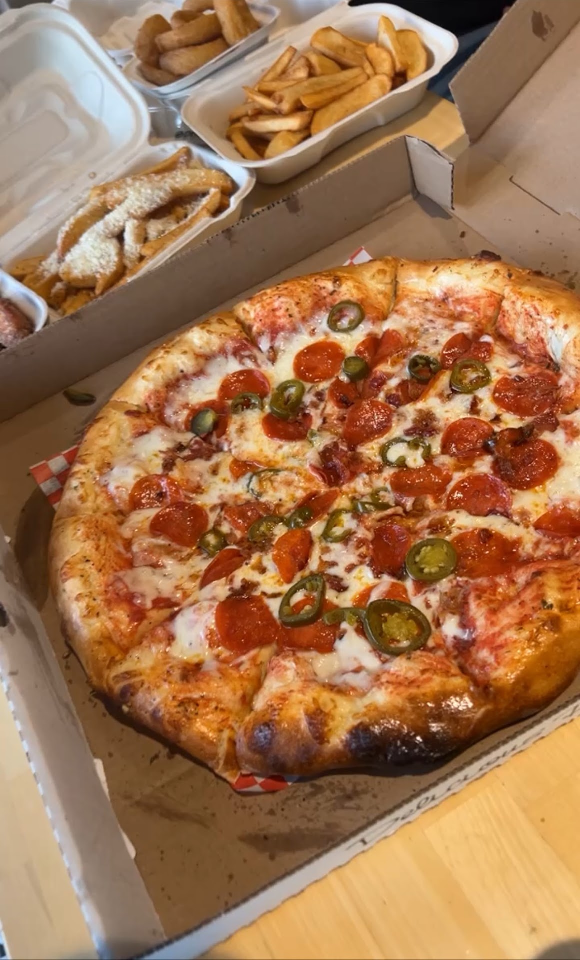 Read moreThe pizza and garlic parmesan fries were delicious. The staff was friendly until it came to our order being messed up. Ordered a small hawaiian pizza, pineapple, and Canadian bacon. We got peperoni and candian bacon instead. My wife tried to correct the pizza issue, but they insisted it was correct even when seeing the receipt. My wife didn't feel like arguing, so she walked away. The family that ordered after us had their order messed up and got free mozzarella sticks on the house. Talk about salt in the wound. Im willing to go back for a second chance as I always do, especially since the food was good. Hopefully, they can work customer...