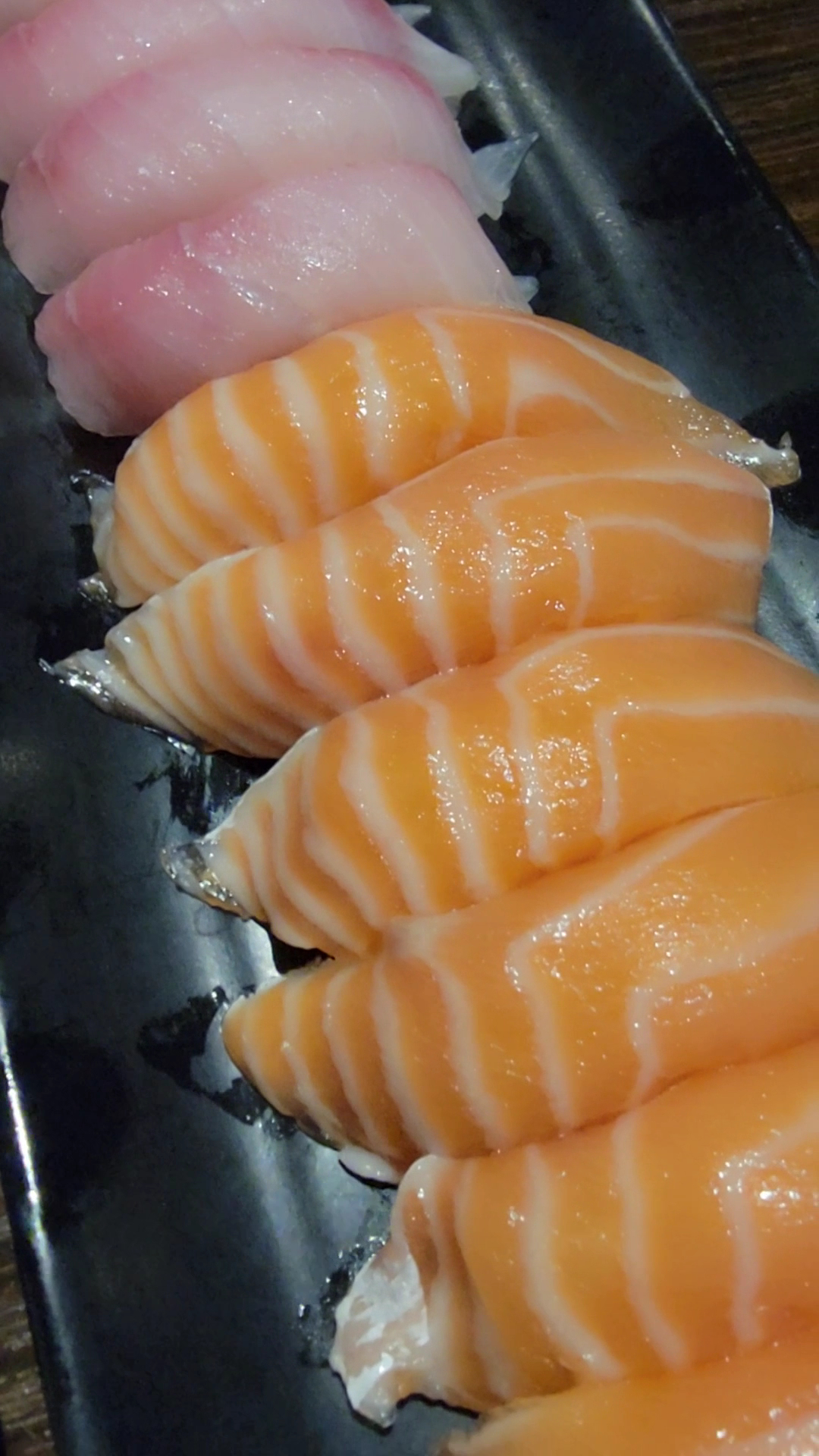 Peppered Salmon sushi (4.5) Flavor Punch ! One of my favorite plates to eat. I liked their approach to it. Smokey lightly sweet sauce, šyummy.