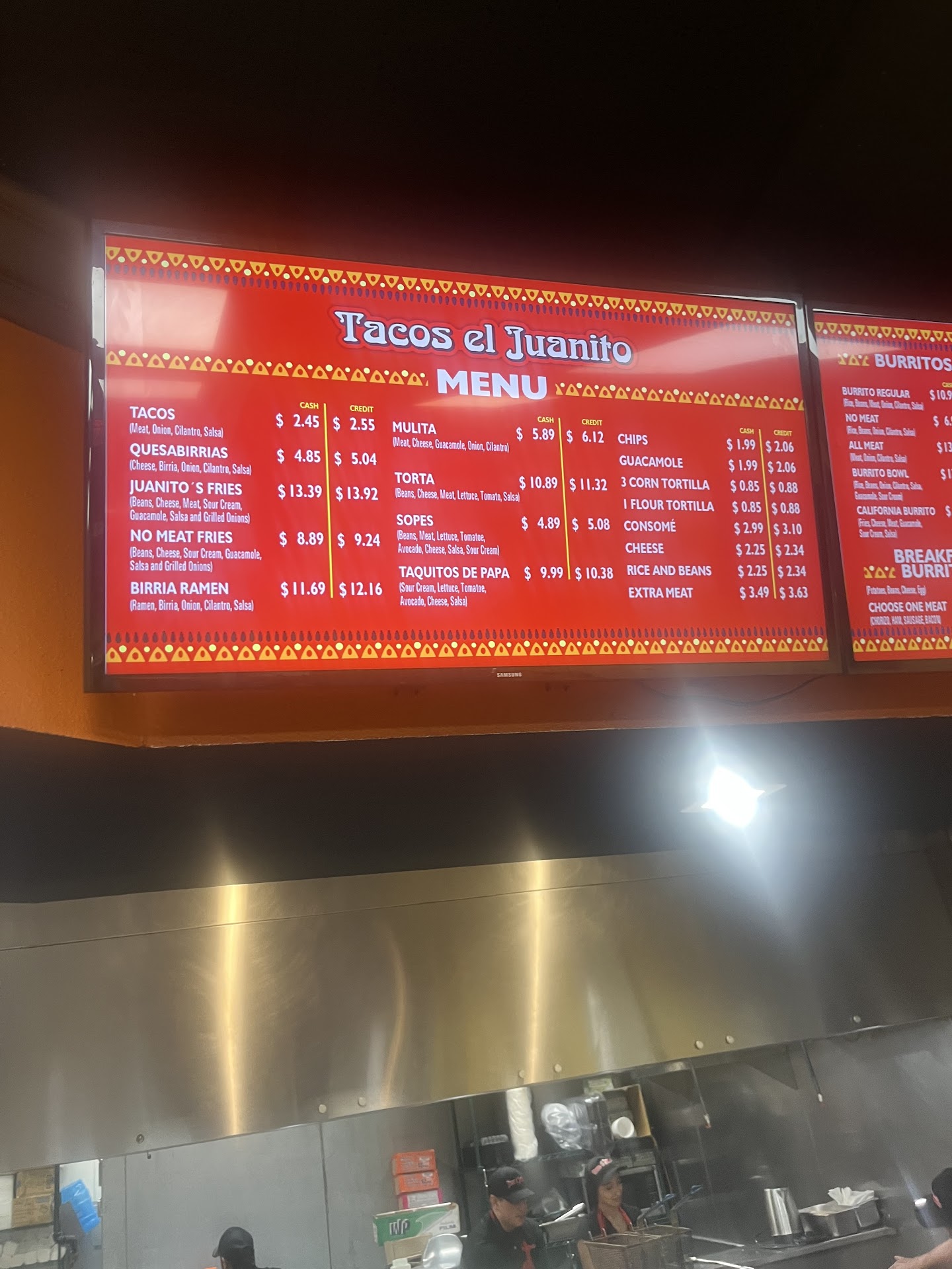 Read morePartner and I stopped by El Juanito around 11:30pm on a Thursday, expecting a quiet atmosphere since it's a 24/7 location. However, I was pleasantly surprised to find the restaurant bustling with activity, despite the late hour. The staff was impressive, with numerous employees working together to keep up with the demand. Although I wasn't particularly hungry, I opted for the al pastor burrito, which could have benefited from a bit more flavor. On the other hand, the carne asada fries looked incredibly appetizing and were definitely on my radar for next time. The service was prompt and friendly, with our server efficiently attending to our needs. Overall, while my meal was sufficient, I appreciated the convenience and energy of this 24/7 spot. I'll definitely be back to try some of their other dishes, especially those delectable-looking carne...