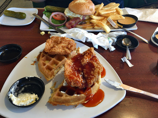 This time around, we were on our way home from an actual emotional experience and we just wanted some classic comfort food and Wingers delivered in spades. Everything we ate was delicious. My wife got a burger with an egg on it and we shared a sampler platter. I ordered the chicken and waffles. Pro-Tip: Pass on the syrup and have them serve this with their sticky wing sauce. It's magical! Of course, there are no Wingers locations in the Greater Seattle area and apparently they've pulled out of BC Canada too so we'll just have to wait until we come east but we'll eat there every time now. The service was top...