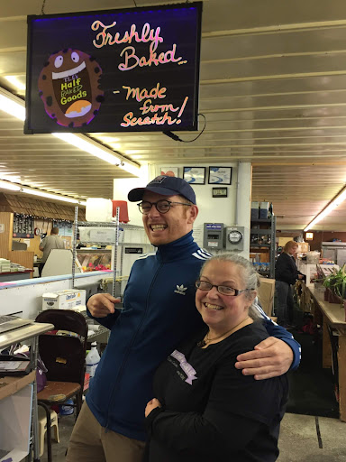 My 1994 German exchange daughter's husband requested some American chocolate chip cookies when they came to visit. Prior to their arrival I asked Lori if she could bake some soft chocolate chip cookies, which she did. Klaus just loved the cookies. So we took both Klaus and Bettina to the Leesport Market so he could personally thank her. In order to have cookies during their entire visit, he limited the number of cookies he ate each day. The one photo is of him giving Lori a hug of thanks and the second picture is my husband and myself with Klaus just before he ate the last cookie. He mentioned again how absolutely...