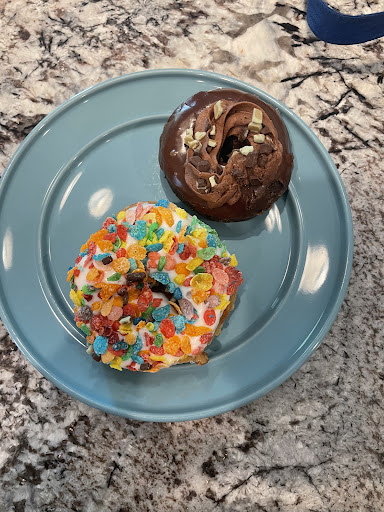 This time around I grabbed an Andes mint donut and fruity pebbles. The Andes mint donut is a cake donut but SO good. I think they may even put mint into the dough but it seriously tasted chocolate and minty, just like an Andes mint! The fruity pebble donut was just as good. The fruity pebbles are a bit stale which makes sense so don’t expect too big of a crunch but the flavor is on point and the yeast donut is fluffy!