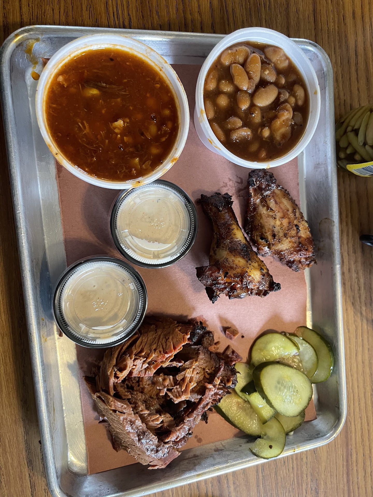 Read moreâHey Google, give me the best places to eat In Opelika.â Well this bbq spot showed up and thank goodness I was craving bbq. So letâs start off with the environment and staff. The environment is soo cute. The spot was definitely any other bbq would have, small, little house-like buildings with old paintings and the smell of smokes in the air. I like it. Sure it may have some scraps but it really shows how old and historic it looks. The staff was friendly and helpful. The lady that took was very informative and polite. And the guy that gave my food was quick and clear. Also to mention I went on a Wednesday. Now with the food.. it was okay. Mid. The brisket was very tender and juicy, yet it had a taste to it. That I didnât like. Same goes for the wings, grilled nicely and cooked throughly yet it had a taste that i couldnât describe. My sides were stew and baked beans.. I wasnât feeling the stew that much. The baked beans were ok. Genuinely this place was okay. I canât say more than that. Also grab peanut butter pie, I did like that. It was creamy and delicious!! You guys should totally check out the place for yourself. Everyoneâs opinions is different. I wonât...