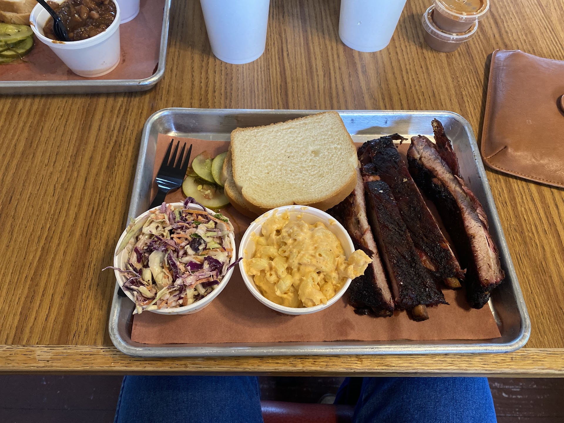 Read moreVisited this restaurant on Monday afternoon.... I will say that maybe this was the problem. It was after 4pm and everything was not up to temperature for me. I got a rib plate (4 bones) with mac and cheese and Brunswick stew and a pulled pork sandwich with the sweet BBQ sauce. The ribs were just off the grill...I mean they brought it in off the grill. The mac and cheese was on a hot table behind the counter and the person fixing my plate scooped it into the individual serving cup. The plate came with 2 sides, 2 slices of white bread and pickles which ended up being sweet 𤢠and not dill. The pulled pork sandwich was a standard sandwich on a bun. Ok the ribs were tough and dry and had no seasoning, the mac and cheese was cold and didn't taste like any mac and cheese I've ever eaten and thsts not a compliment. The white bread on the plate looked like pieces that were close to the ends so they were a bit hard. The pulled pork nas decent it was nicely seasoned but wasn't dressed with anything just more sweet pickles.. I didn't like the bbq sauce. I tried the sweet kind it was thin for my taste. They had sweet, hot, Al white and vinegar. They also had a good variety of drinks and tea available self serve and all you can drink while you dine. Inside dining room was spacious and they did have an outdoor patio that was cute and covered . I didn't get a picture of it. There was a good sized parking lot. I actually didn't see bathrooms but I'm sure...