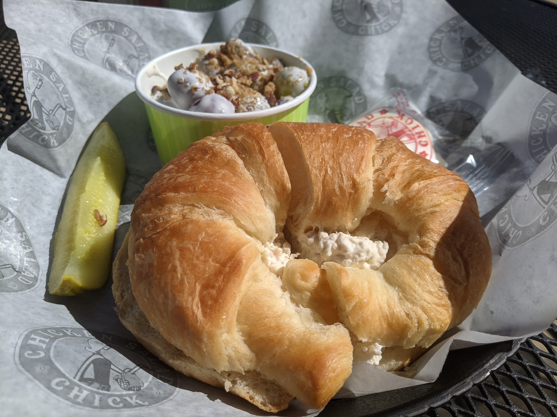 Chicken Salad Chick never disappoints! I recently ordered "The Chick," opting for the JalapeƱo Holly sandwich on a croissant with a side of pasta salad. It was an absolute delight!š„š„š„° The croissant was perfectly buttery, and the JalapeƱo Holly provided the right level of spicy kick. Paired with the creamy pasta salad, it made for a perfect combinationš«¶