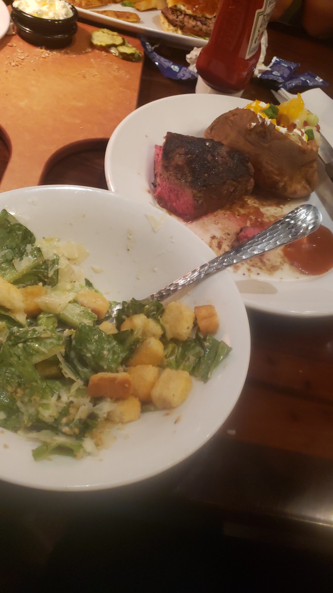 Read moreWe used the app to get in line and pulled into the parking lot when we were 3rd in line (by the time we reached the host stand we were "called"). They must be short on waitresses (12/31/2022), because it took over 7 minutes for our waitress to return to our table (each time), and she was distracted (not very observant: (example) at the end she visited our table 3 times (7+ minutes each visit) after we had stacked and organized everything on the table). My lady's birthday is the reason we came, her daughter ran out of soda and me out of water multiple times (sucking on melting ice), the 4th member got there we still hadn't gotten our bread, and the mixed drinks we ordered: heavy handed on the alcohol (threw the flavor off in left field). 4 person table: 4 salads, all made the same except the dressing (on the side), 3 delivered, then mine later (when everyone got their entrees), I got my entree after the bread was delivered. My 🍔 looked like a well made sonic burger (but twice the price)...remember the weight refers to the meat WHEN ITS FROZE, NOT AFTER IT'S COOKED (so it sounded bigger on the menu). We spent over 115$, the best thing about the entire thing was the conversation. The food was made right(buffed up in description), but the only reason I got full was my lady and her daughter didn't finish their salads and appetizer.. we would have ordered desert and more appetizers, but they filled up on bread, salads; and bread waiting for...