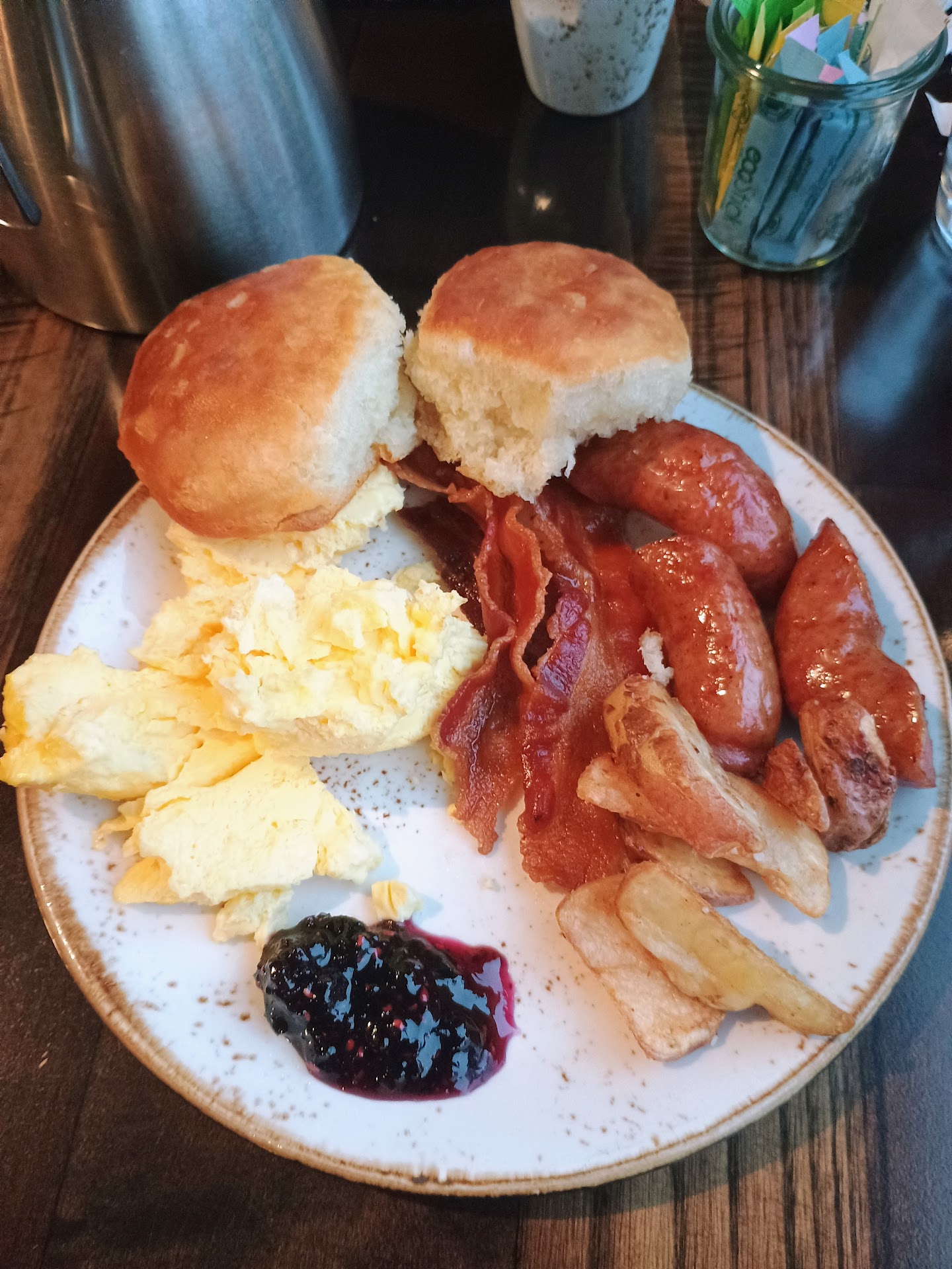The omelet was good—not your usual hotel-sized serving. I could really taste the onions, though my daughter joked it was “too eggy.”