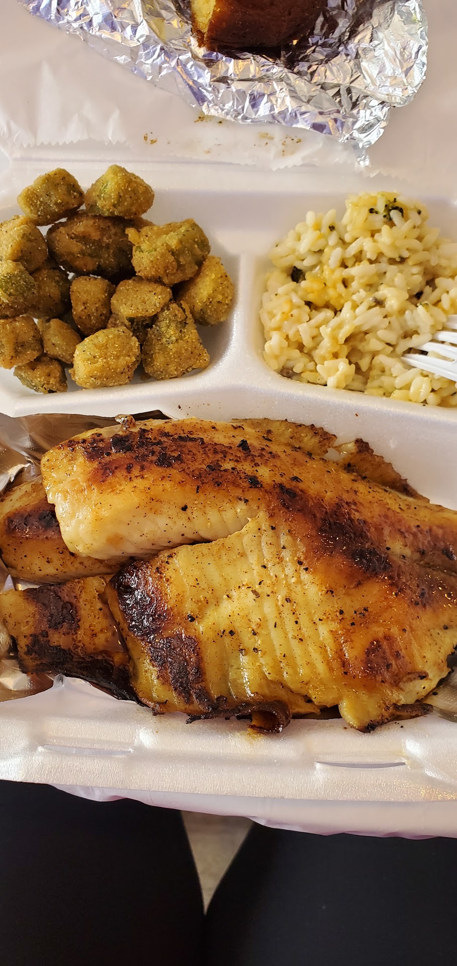 First of all OMG....slap ya mama and grandma no disrespect.....so delicious 🤤🤤🤤 I would recommend to everyone. We had a pork chop dinner with broccoli casserole and field peas with cornbread.... and a tilapia dinner with broccoli casserole and green beans with a dinner roll 😍 Second the woman who owns the place is my new grandma....she is sweet as pie and made sure we had everything we needed. Third of all purple is my favorite color and the inside is very beautiful almost like an elegant setting.💜💜💜 I promise you grandma when I get married you are...