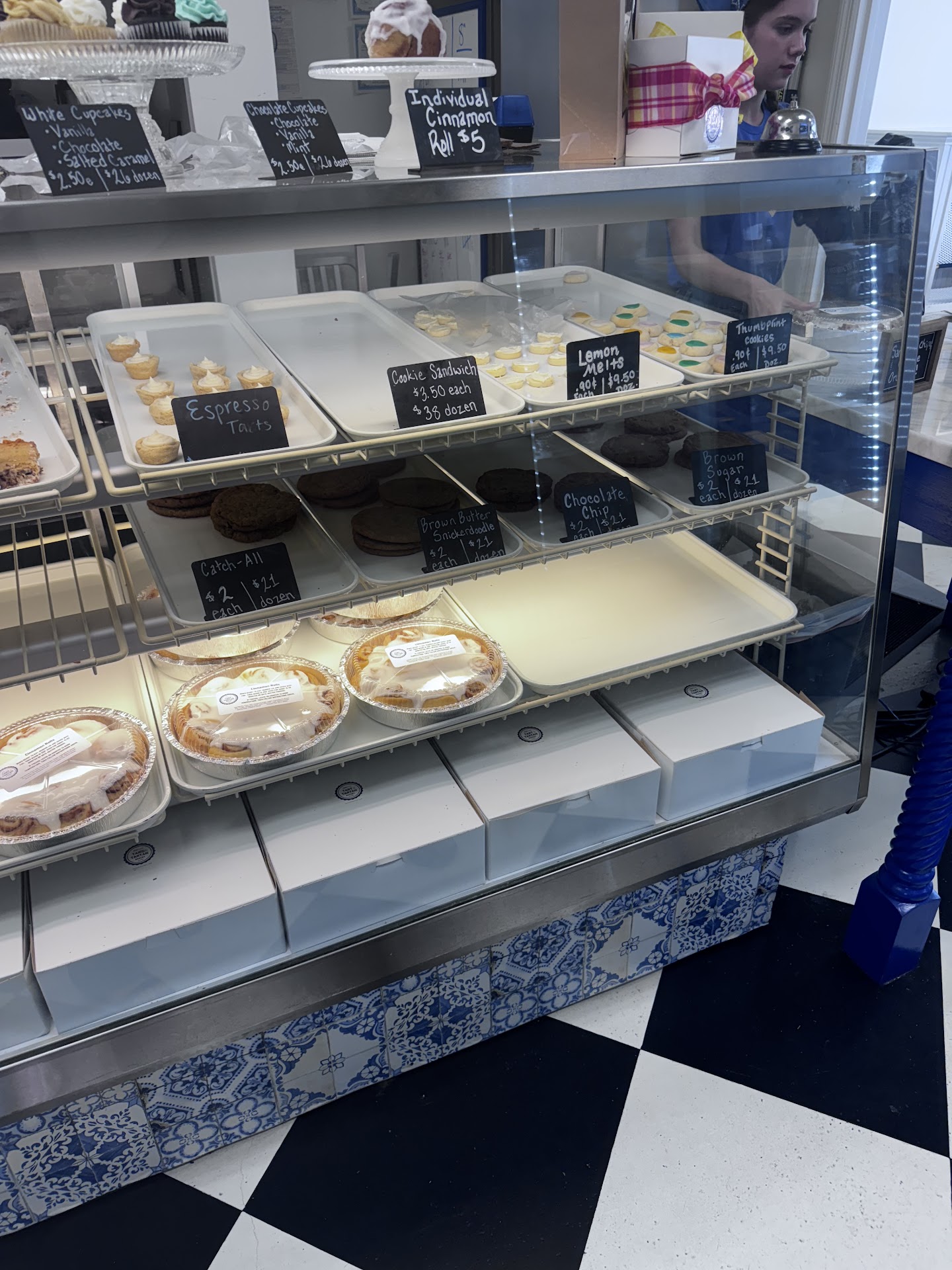 Read moreCute little bakery in town. They had some fridges with what looked to be premade lunch/dinner meals. The chocolate chip cookie is 10/10. The espresso tarts was fabulous! The lemon melts were too airy for me. Immediately melted if you like that but I like more of a butter base cookie. The thumbprints were the same melt and I like something more for those....