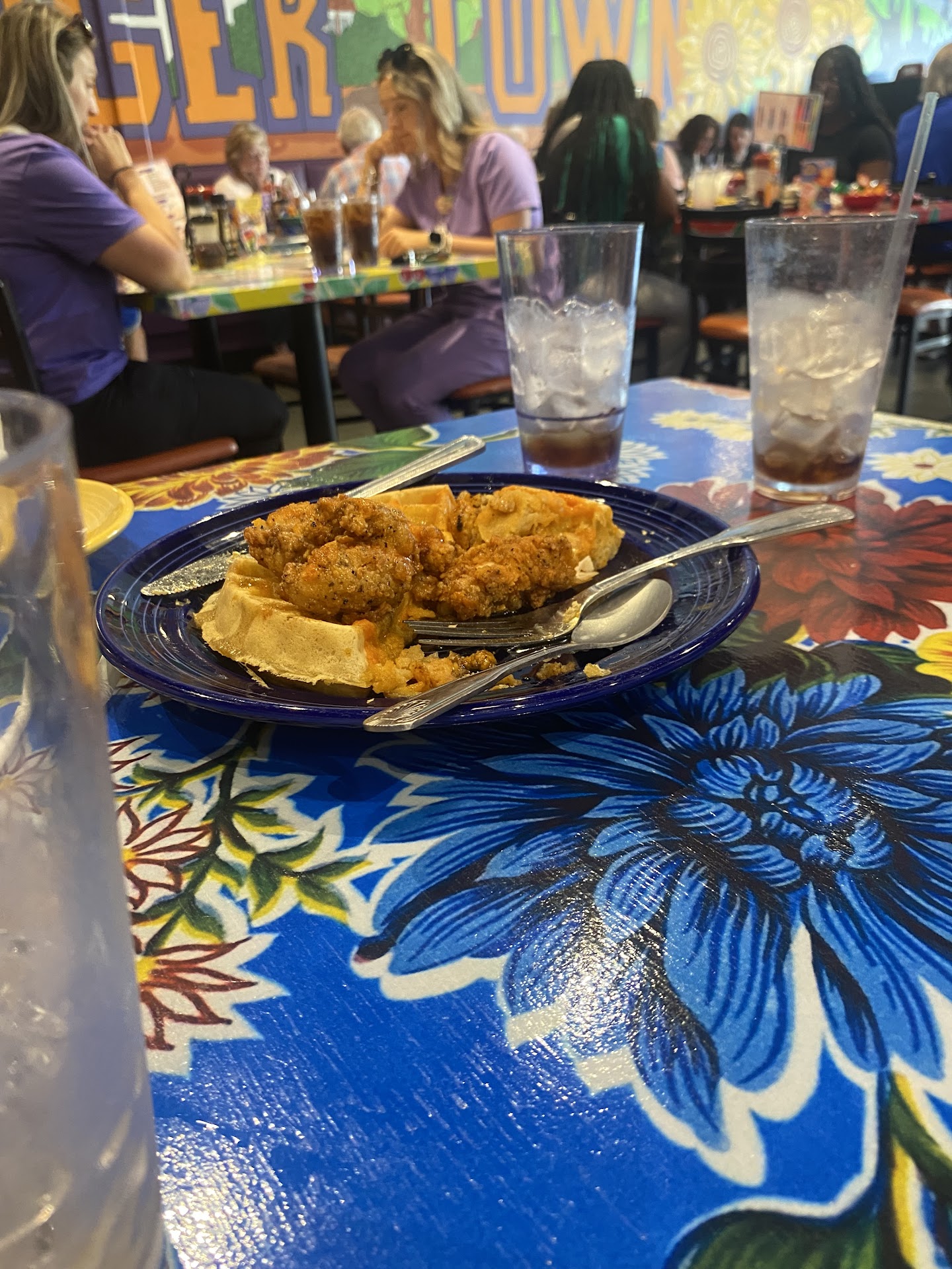 I unknowingly scarfed that French toast down. It was four fairly large, half triangle slices of bread. I also got a sweet tea and it was well done sweet enough, but not too sweet. And you do get free refills on that. For a brunch spot this was a very comfortable amount. Granted, I did not get any sort of alcoholic beverage, so that might’ve tipped the scales into a more affordable side of things. But I am MORE THAN satisfied with what I received.