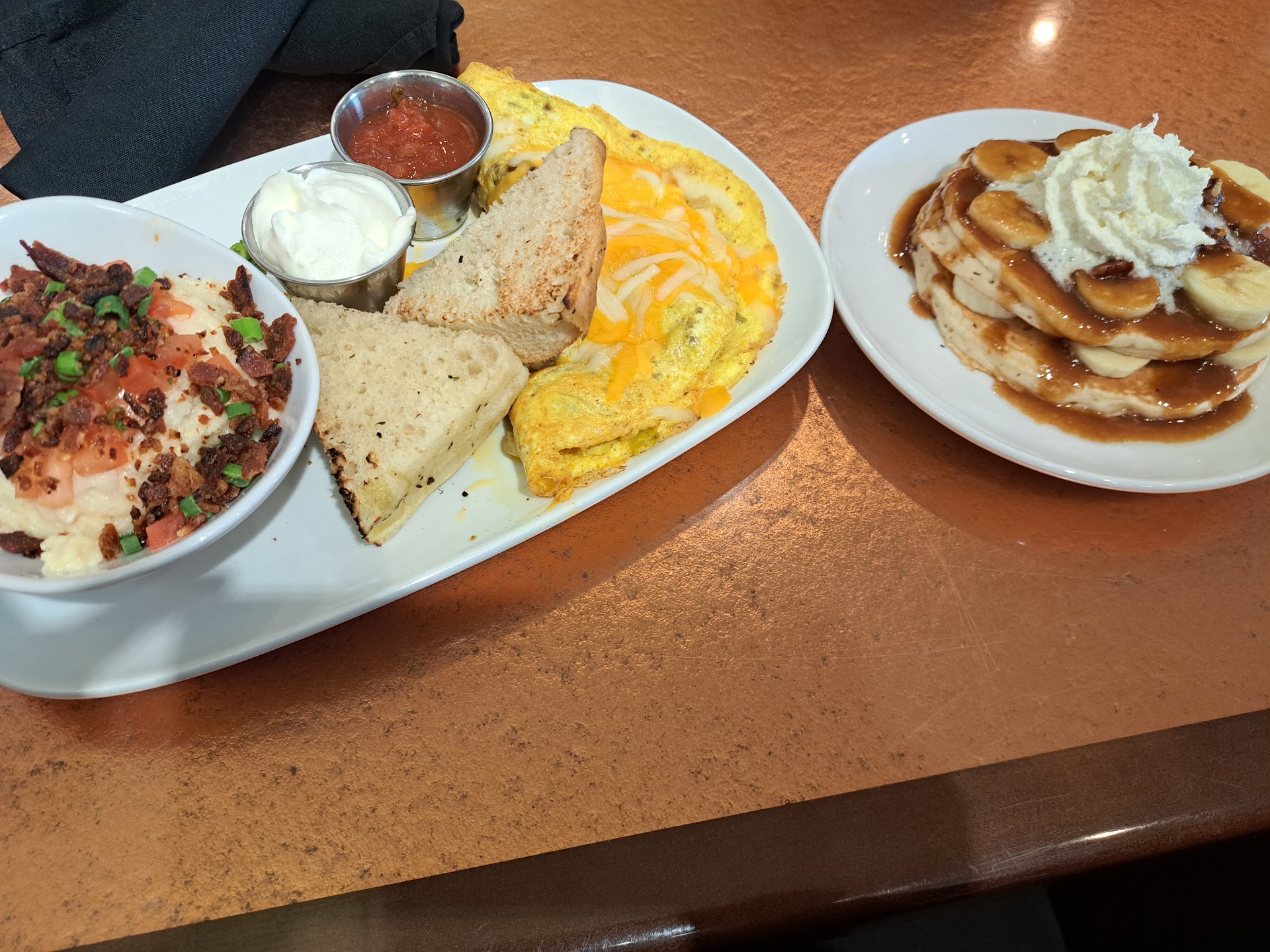Read moreI talked my husband into trying this place out as I have heard amazing things about it, the young lady hostess was very sweet when we came in and put our named on the wait list,it was very busy we didn't mind the wait, once we were seated, it did take almost 10 minutes for our server to greet us , again busy, I get it. She took our drink order and we placed our food order at the same time since we had been sitting for awhile and knew what we were going to have. Drinks came out we were served water in a glass shattered all the way around ,no silverware ever came I had to get up and get it myself , our server dissapeared for a bit, maybe in the kitchen? My husband asked for a coffee a few times before she actually brought it to him, when the food came out the server was standing at our table informing us that they were out of hamburgers, which is what he ordered, as the person that brought the food from the kitchen slammed the tray down and startled not only usbut all of the tables around us. So we ate while my husband sat waiting for his food to be cooked. My daughter ordered the chicken bacon avocado sandwich, no bacon or avocado came on it, I asked for a manager since we all finished our food and my husband still hadn't been served , manager Corey came out dropped off his sandwich and said nothing. No apology nothing, server dropped off the bill, again no apologies, my husband said to take the sandwich off we were leaving since we were all done eating, and we weren't going to sit with a 2 year old in tow for another 20 minutes while he ate. I understand if you are put of something or there is a screw up in the kitchen, but apologize and try and make it right. As were leaving the hostess apologized and said it wasn't usually like that and that she was so sorry... she was the only person who even seemed to care. 2 of the 4 dishes we did get...