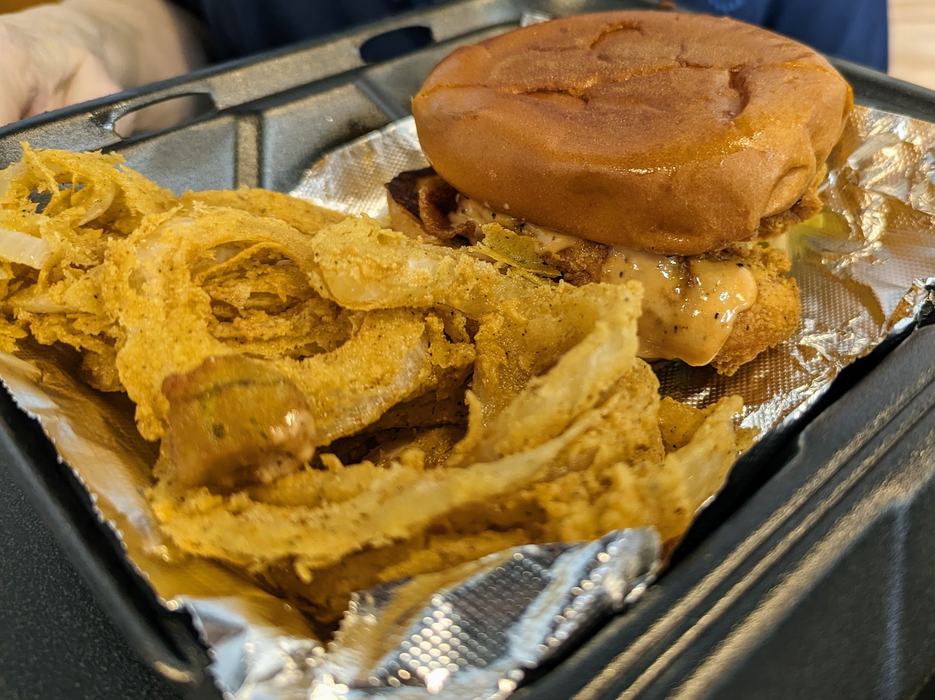 Normal sides at the other places are some sort of fries and slaw, maybe a piece of toast. But here you can easily sub out onion rings or fried okra for the fries, which is a nice alternative. The onion rings are coated, not batter-dipped, so they're a bit lighter. The ones I tried were good thanks to using sweet onions. The okra is also good, but fried okra is hard to mess up.