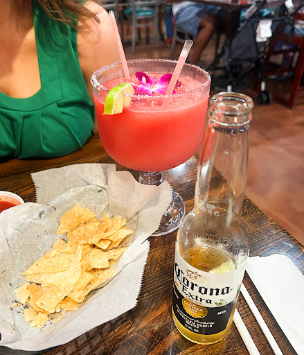 Seating: We were seated right away; 0 wait. The atmosphere was festive, but not too loud. Our server, Leroy, came by quickly to introduce himself and take our drink order. I asked for the standard Corona and my wife got the frozen strawberry margarita. The frozen marg was actually VERY good.