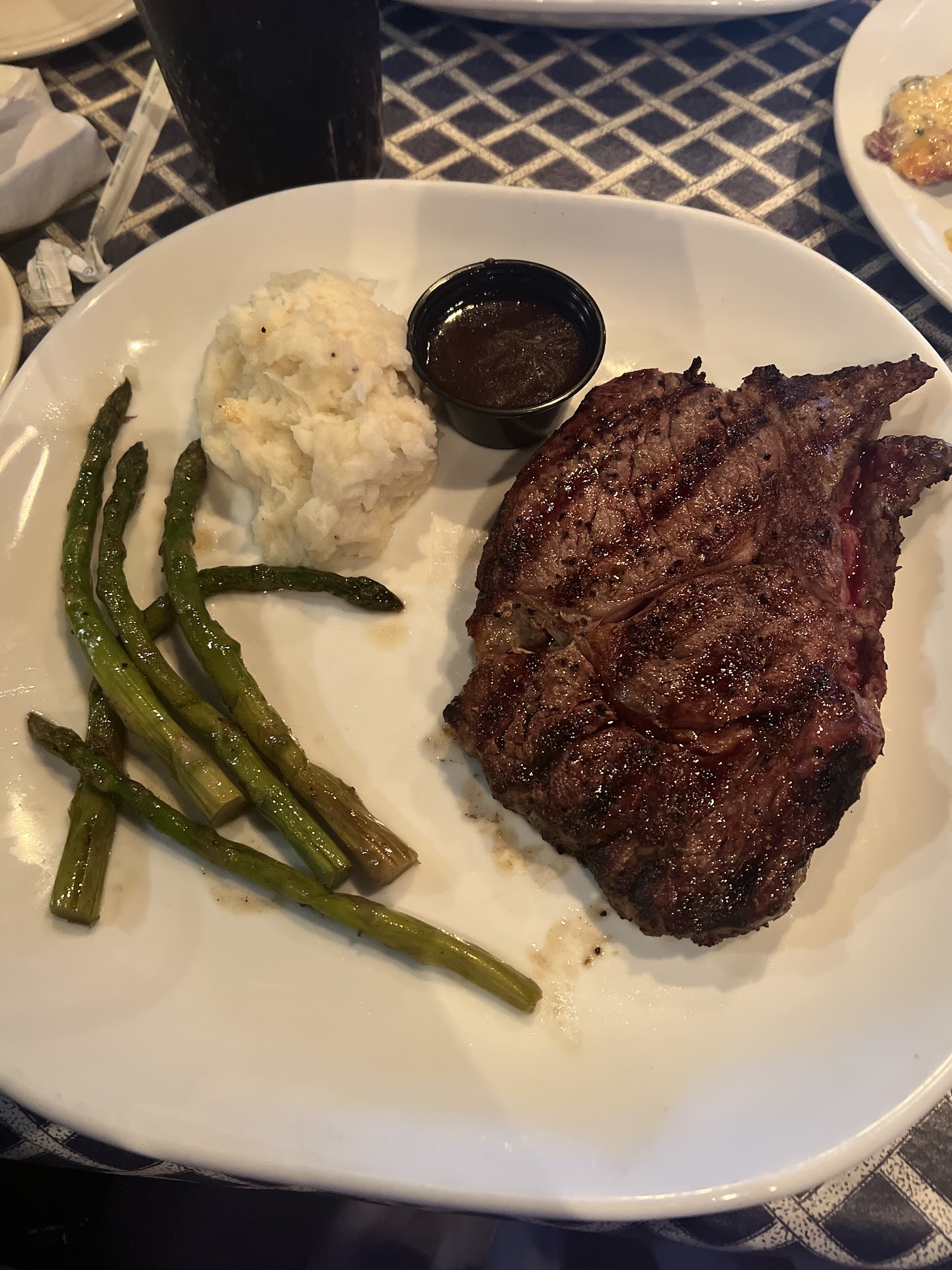 Read moreI would have never chosen this place on my own but it was on a recommendation list mentioning that the grouper was great - and it was. Upon walking in there are two sides of the place - the bar side with music playing and the bistro side with a stage and they had a local comedic musician doing a set. The "hostess" who did the greet&seat seemed like a stressed out manager who was annoyed and bothered that we were there. I was set on the grouper but I couldn't eat the crab nor the mushrooms - my waiter said I could customize whatever I wanted however I wanted like an alacarte menu. Everything sounded so good so I finally settled on the Pecan Chicken meal and added grouper, knowing I'd have leftovers but it just seemed too interesting to pass up. When they brought out the meal, the grouper was a very small piece but as the waiter set it down he said this piece is too small I'm gonna bring you another one. The first one was delicious - the second was even bigger and even more delicious! The chicken was a huge piece - pounded out flat, crusted in candied pecans then fried and cut in half. The breading fell off but it was still delicious! I usually love the side dishes more than meats at most places but surprisingly not here. The sides weren't BAD but not nearly as good as the proteins. The Gouda mashed potatoes were heavy, the shaved brussels were okay, I would have preferred halved or quarters though. My mom had the 12.99 prime rib special the meat again was the star - the mashed potatoes were plain and dry. The green beans were seasoned well but severely overcooked though still delicious. My dad had the fried shrimp platter - they werent jumbo shrimp as advertised but they were medium and a lot of them. The fries are battered then fried. Oh and we started with the fried green tomatoes with blackened shrimp and roulade - the roulade and blackened completely masked the flavor and beauty of the tomatoes which was disappointing though it tasted good. The shrimp were a bit soft almost mushy though. The bread and spread were thoroughly addicting and unique and one of my favorite parts. Oh they also have 3 different quarter cocktails that are 25 cents for the first one then $8 for any following. They were fairly basic (Cosmo, Sunset, Blue Wave) but perfectly decent in quality and selection for just a quarter. The rest of the food is quite pricey to make up for them. 3.5% service fee for credit card processing (which tbh I thought was illegal or against most processor contract agreements but okay. It was a $110 night for 3 people. Couldn't afford to eat here as a local on a regular basis but it was nice...