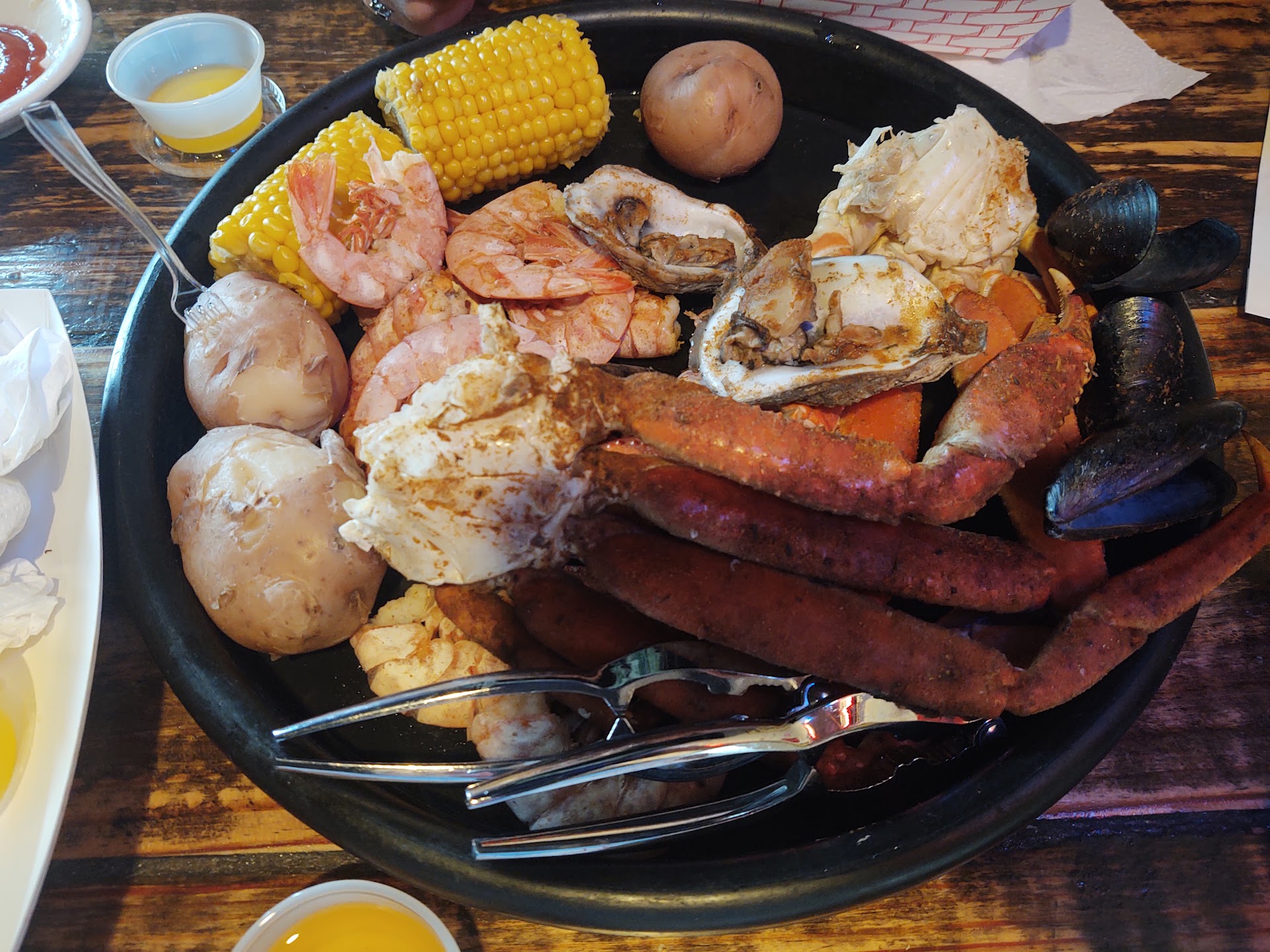 Probably not bad overall, but definitely not ethical, which forces me to rate this place a 1 star. Went there specifically for steamed royal reds. Was served steamed Mississippi Brown shrimp. Big difference in appearance and taste. No way the staff doesn't know the difference especially since they offer Steamed Gulf Shrimp which is a common discription of Mississippi Brown shrimp. Server appeared to be ginuinely surprised by my objection to the switch in product, but might have just not known what to say about being caught serving a lesser cost item as a premium item. He said that he would speak with the manager and see what he would do. I expected the manager to discuss the issue and offer a resolution, possibly a reorder/replace with correct item. Instead the bill came at the end of meal with several items omitted from the bill without any explanation or interaction with the manager at all. Makes me think they just wanted me to quietly pay the bill and leave before any of their tourist customers found out that they were being defrauded. Portions are large, but that's easy to do when you are serving a cheaper product as a premium. I wonder if anyone else got the same reduction in their bill for being intentionally served the...