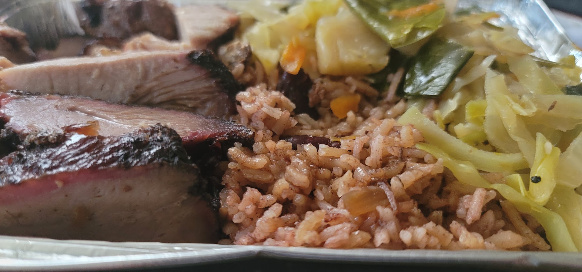 When I got home and tasted my meal, I was really disappointed. Nothing tasted authentic. The jerk chicken wasn't spicy or flavorful. It also had a funny plastic smell to it. The cabbage was bland and the rice and beans were the strangest I've had. It was like Indian Basmati rice with a few beans thrown in. I'd say the beef patty was easily the best part. The whole meal just struck me as disappointing. I'd rather just hit up...