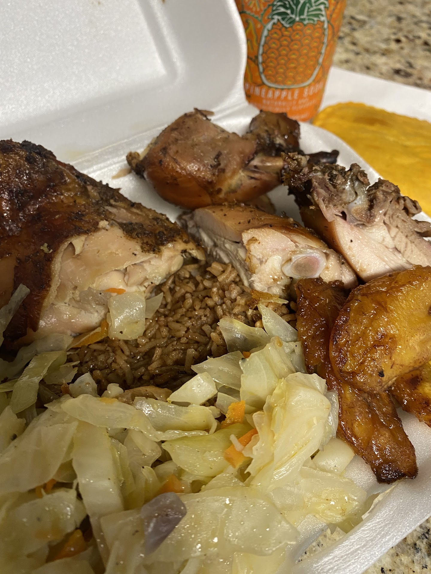 Unfortunately, it fell way short in my opinion. Whenever I find up a new Jamaican spot, I have to order my favorite dish to see how they compare to the rest. It's all about the Jerk chicken, rice and peas, cabbage, and sweet plantains. I usually like to throw in a spicy beef patty too.