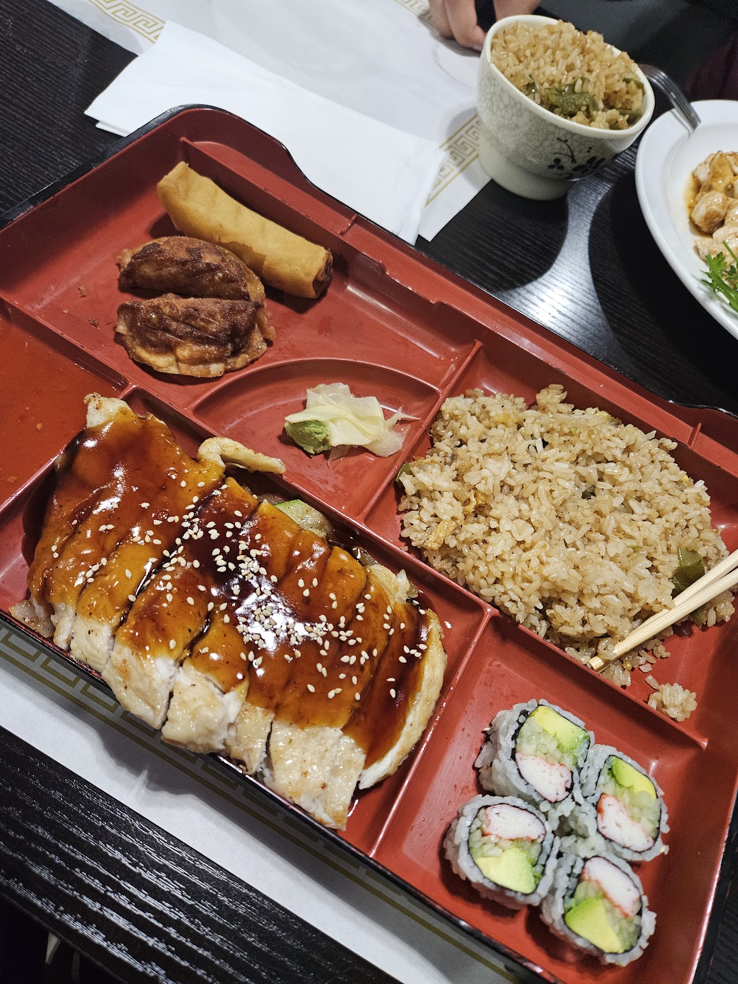 I very excited to try this place as it was close to where I worked, but was very disappointed with the food. I ordered the lunch bento box special which was the teriyaki chicken fried rice, ginger salad, and California rolls with no avocado. The salad was alright but the ginger dressing was terrible. The fried rice had literally nothing in it end it tasted awful. It tasted like someone cooked it in lighter fluid. The California rolls were very dry and did not have much flavor to them whatsoever. The chicken teriyaki, if that’s what it’s called, was disgusting. The teriyaki sauce did not taste anything like teriyaki it looked and tasted like brown colored lubricant jelly with sesame seeds. I ate with some friends who all stated their food was terrible too. 2 of them got the chicken pad Thai and another got the same as me. We all got sick to our stomachs after eating it and the food was not even worth it. I cannot say I will ever eat here again. When we went in to order some of the employees were arguing and one was yelling at a customer telling him he was being too loud, but the poor elder gentleman was hard of hearing even with his hearing aids so he couldn’t help but speak a little louder than normal. The overall experience was not good. Hope others have a...