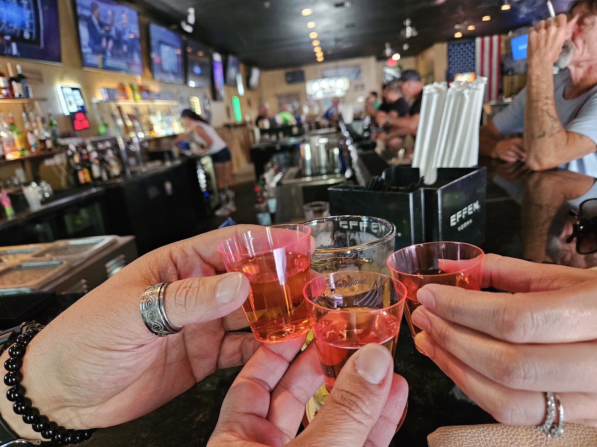I visited the establishment on Wednesday and was disappointed by the behavior of a bartender who was extremely rude. Throughout the evening, she displayed a dismissive attitude towards me. Her focus seemed to lie with socializing rather than providing adequate service to her customers, including myself. When I asked for water while she was in the midst of pouring shots for a friend, she dropped the cup on the ice cooler and proceeded to remark on the universality of mistakes. As she handed me the water, she came close to spilling it. Furthermore, she permitted a group of patrons to stay in the bar past closing time while attempting to hasten my friend's and my departure, even as my other friend was trying to close his tab, which she appeared to prioritize below...