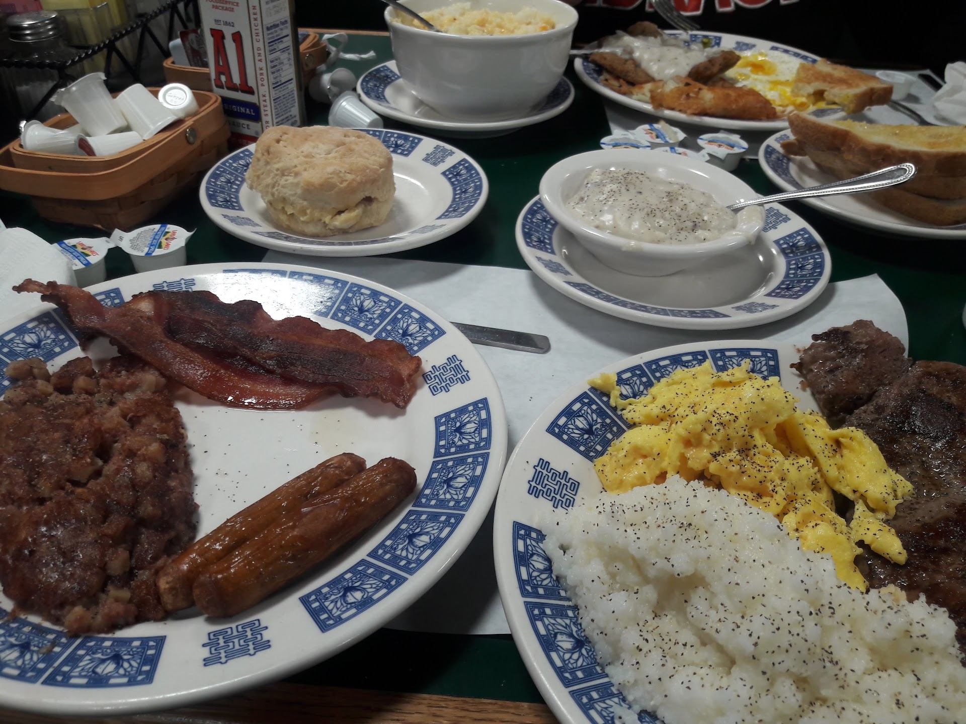 Read moreIt's very rare when a place truely lives up to its reputation and even more rare when that reputation is exceeded.... by more than expected or what I thought was possible. Breakfast is one of those sacred events to us folk from below the Mason Dixon line and if that holds true, Rhonda's Kitchen is where you'd go for the sacrament. If you think that this review is starting off a little strong, let me put a few things in perspective. I've eaten breakfast from one coast to the other and every state in between them. At places heard about and celebrated, places few have ever seen, and places kept a secret cause... well it what they did, lol. Never had I eaten at a place that so brazenly displayed a love for all of those things and delivered it all with an unseen punch to the palate. You'll see the photo that accompanies this review, so when you ask "What's good there?" and the response is "Everything!" you'll know with unyielding faith that's it's the truth. I haven't even started with the actual Review and I'm not sure how to start.... from the beginning with the "Please Seat Yourself" sign that lets you know that booth seat you're eyeballing is wide open or do I just smash cut right to the heart of it all? I'll start from the end I guess, with a biscuit and a small bowl of sausage gravy that were the only things left not completely devoured by the end, never had I expected this blatantly asymmetrical, obviously handmade, baked good covered in sausage gravy to be the icing on the cake of what was quite possibly the most superfluous and wildly affordable breakfast I've ever eaten. A steak that was tender, and cooked perfectly; eggs that were actually scrambled and cooked on a lower heat; corned beef hash salted absolutely right; bacon that was thick cut and cooked with just the right crunch; sausage links with crisp skin outsides and all the flavors you remember from family Sunday breakfasts you had at grandma's contained within; grits that graciously balanced the line of perfection that so often becomes skewed towards water or paste; golden cooked hash browns; and last but not least the wonderful lady who so patiently brought it all out so I could stuff my face with it, and you better believe that's exactly what I did. Not in 1m years would I be prepared for that biscuit and gravy tho....with all ego removed and a humble heart before you I'm telling you now, no where can you find a better biscuit... any where. If you've read this far, do yourself a favor just go in and see for yourself and tell em John Galt told ya. Best breakfast, hands down, ever! We'll be back again... soon... very soon...Oh!! they got pies and I'm a fatty so you know where the next visit is gonna be centered I around. Until next time y'all, eat...