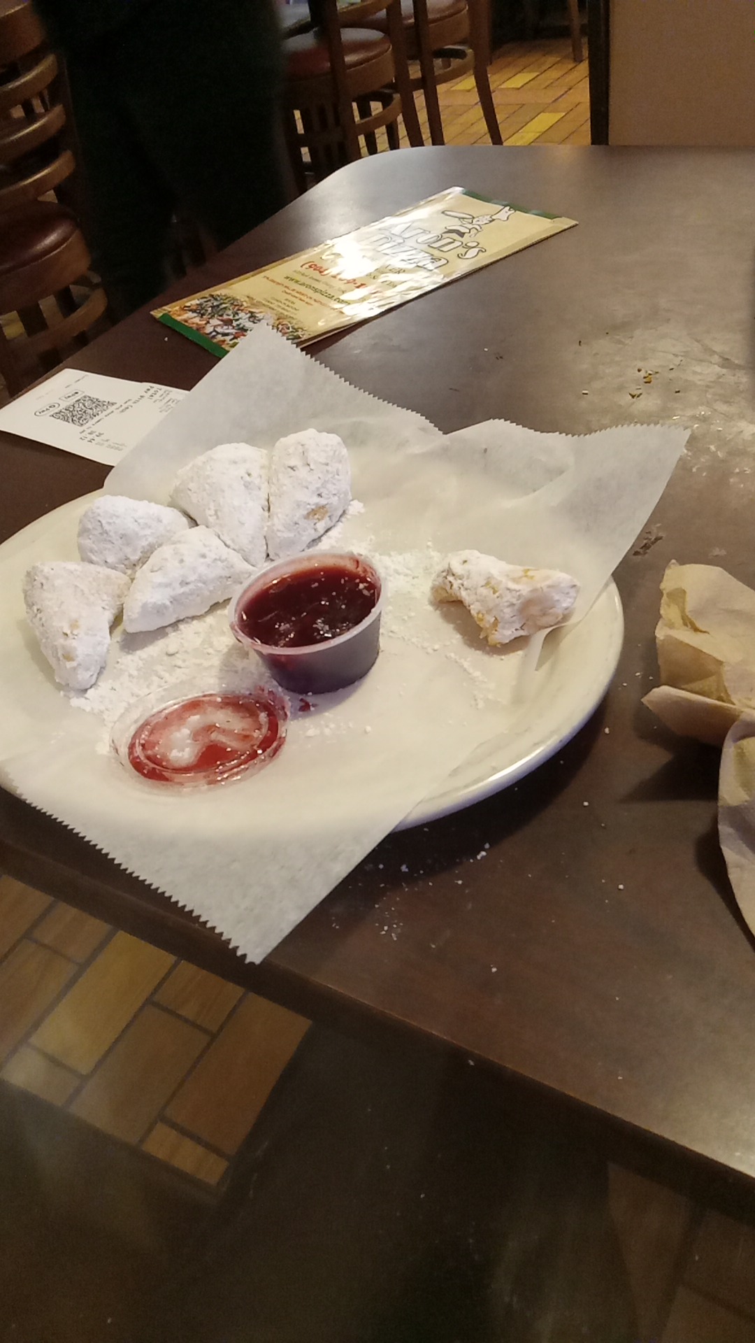 Some final thoughts: If your aunt Gertrude who has never left Iowa would have made the pizza and lasagna, it would almost certainly be more authentically Italian and have more flavor Why did every menu item dish come out separate? Why can Stouffers frozen at least grasp the concept of a layered lasagna with meat and cheese and sauce throughout but Arons serves a hamburger noodle sandwich covered in tomato sauce with fake cheese on top and thinks that is lasagna? If you live in Crawfordsville, IN and have never ventured more than 25 miles away from home, maybe this would pass as pizza or lasagna, but what we had tonight was better suited to a box in your local grocery store freezer case, it was simply unacceptable as pizzeria menu items