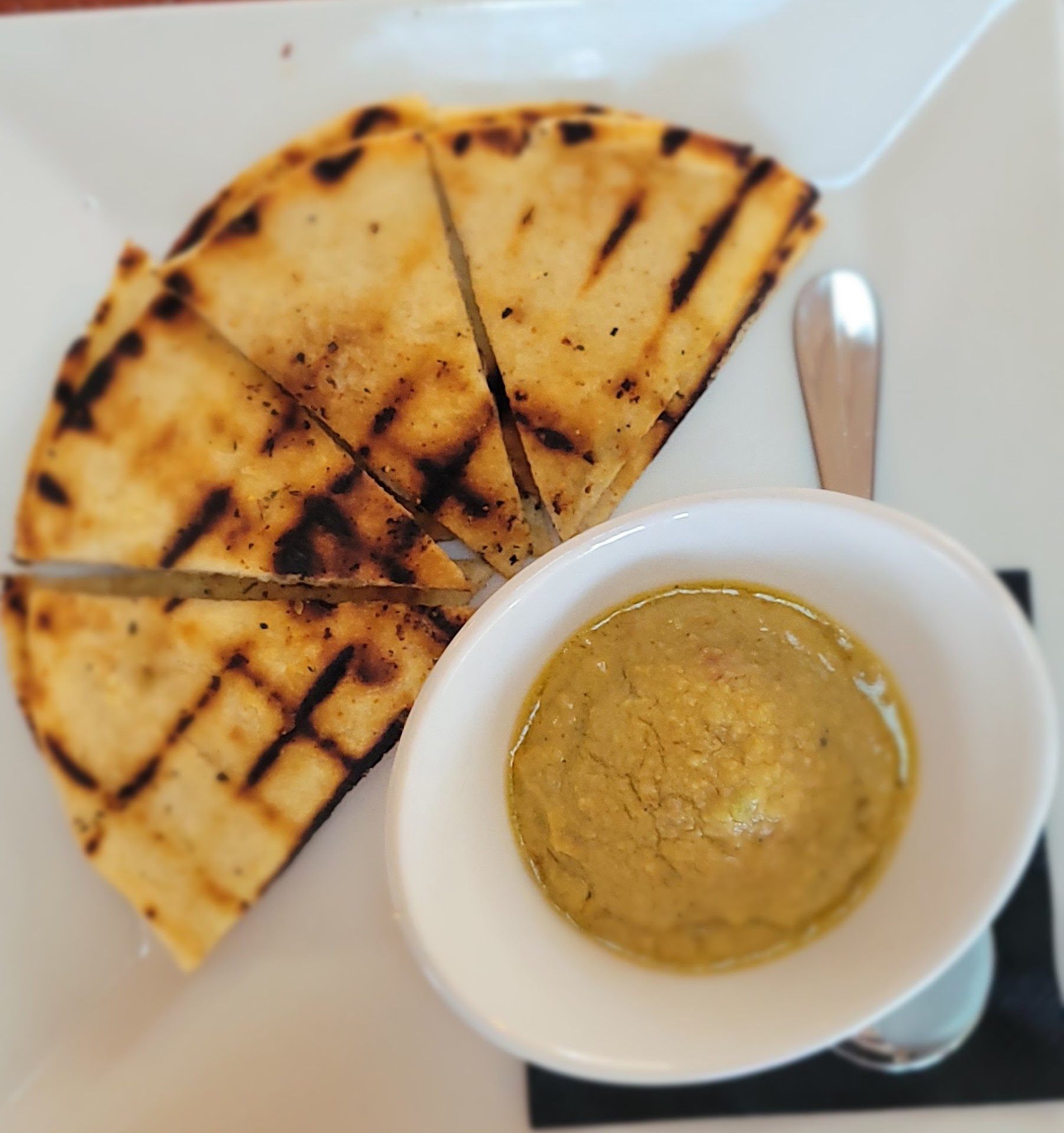 Read moreThis being my first time visiting, I was a little skeptical about trying something new at a new place. However, this food blew me away! For an appetizer,my friend and I ordered the Grandules Hummus (dipped). The pita was soft with a little crisp on the outside, topped with garlic and other seasonings that made the pita flavorful (even if eaten by itself),complimenting the fresh hummus that came in a small side dish and spoon. The hummus had a perfect amount of oil to seasoning ratio and tasted unlike any other hummus I have ever had in a restaurant or store bought. Delicious and perfect start to our meal. Extra pita chips were offered if you wanted them. My friend ordered pork chops with mofungo. Mofungo is a blend of green plantains that are fried and then mashed with a blend of olive oil,salt,garlic,and broth. To me,the taste is slightly sweet but is offset by the spices and broth to compliment the entree (perfect blend). It was my first time trying it, and I would definitely order for myself at another visit. I ordered the creole vegetables with rice and red beans. The beans came in a small bowl with a mix of delectable juices, yucca, and spices. The vegetables were freshly cooked and came in a bowl perfectly cooked (not mushy as you'd find with frozen vegetables and/or overcooked) with the perfect balance of creole sauce to vegetable ratio. Not sure how this is traditionally eaten, but I chose to taste individually and then mix the vegetables with my yellow rice. I used a spoon to scoop up my beans and then a little bit of rice. Everything was absolutely delicious, fresh, and had the perfect balance of spices to food ratio as well as the perfect sauce to food ratio. I have tried plantains before and have not enjoyed them much in any which way, however this place got them spot on and I loved them!! They know exactly what they are doing in that kitchen and I highly recommend! It was worth every penny! I will be returning with friends!! (Decor can seem a bit outdated at first glance, but it gives enough room for people to move around and not feel cramped. This can be good for those in wheelchairs or mobility chairs and easily maneuverable for putting tables together for larger parties. The dining room and...