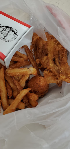 The fish was good, and the hush puppies w a little good. The chicken was also good.