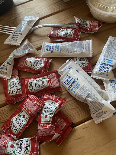 They did provide a fair amount of ketchup and tartar sauce, along with napkins.