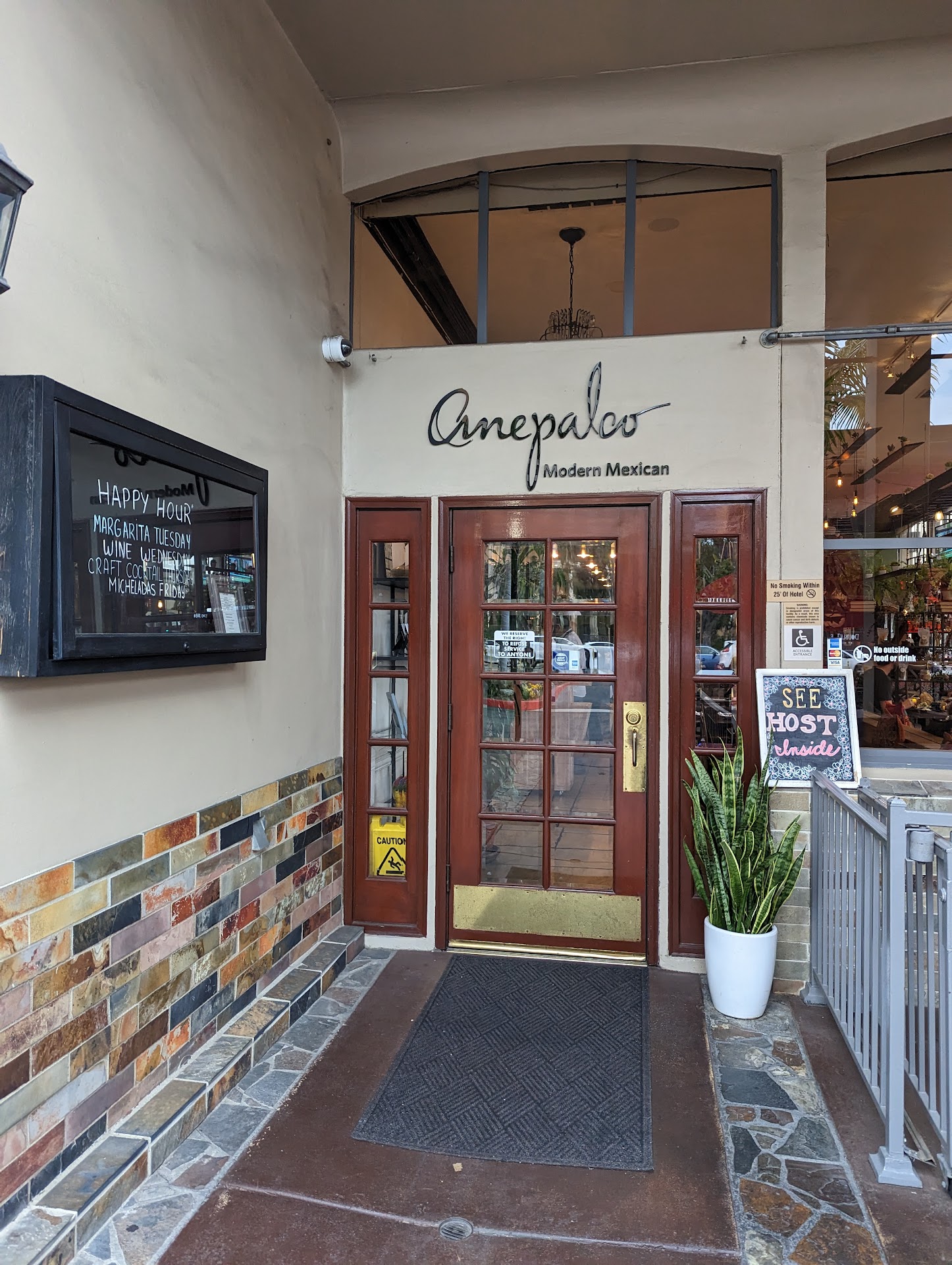 Read moreAnepalco is a posh, modern restaurant showered in greenery and with a stylish covered patio outside. Located next to the Ayres' ALO Hotel, the parking is scattered around the venue. The service is friendly and the ambience is fun, but the food holds back on flavor and portion size.