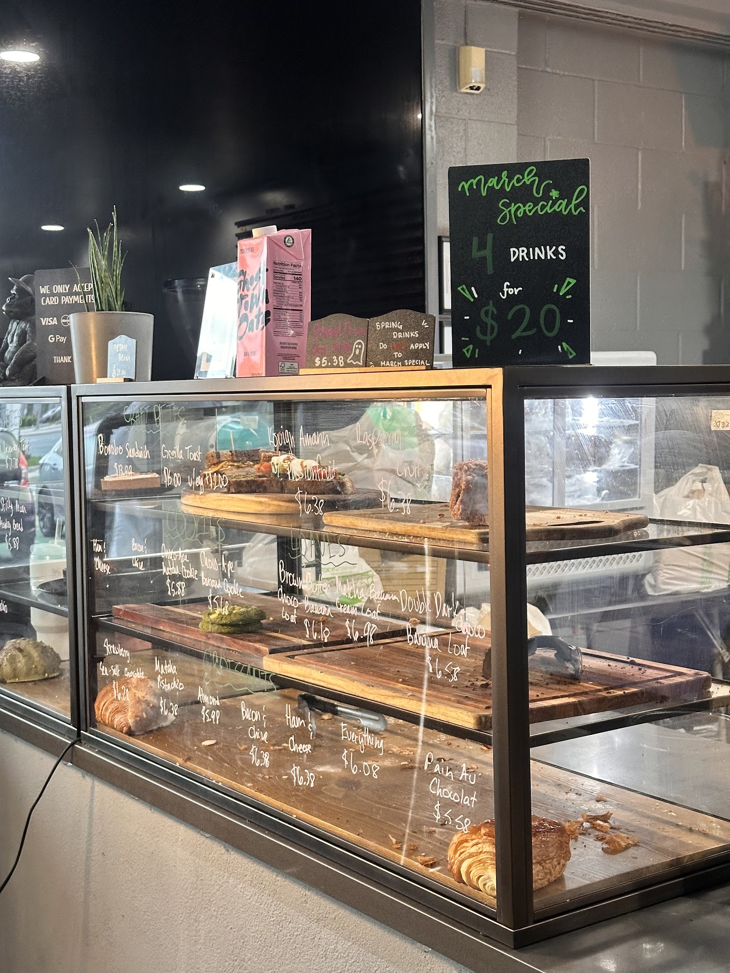 Each piece of regular sized loaf will run you more than a coffee at around $8. No joke. I went home and made a pan of 20 pieces for the same price. Theirs were stale on the edges--and no wonder--at that price, who is buying them? I went to a higher end coffee shop with pricier real estate and their baked goods didn't cost this much-- so what is the deal here?