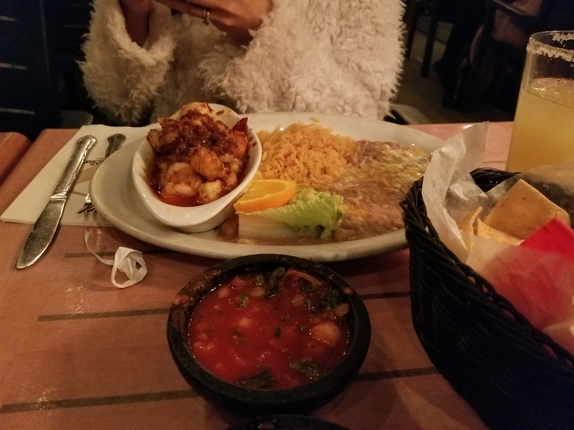 Everything came out to perfection. My Carne asada came out exactly as I expected, my wife ordered Camarones a la diabla and asked them to be mild and not too spicy and they granted her wish. My picky Dad ordered 1 Fish taco, still hesitant of ordering two because of past experiences at other restaurants, he loved the taco with rice and beans. My mother killed her Camarones rancheros, and my daughter munched down on the taquitos de pollo.