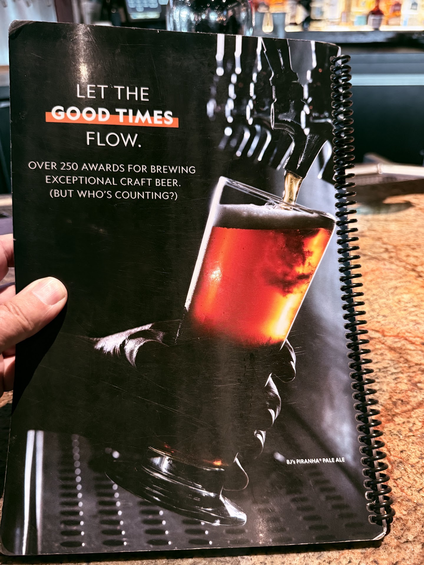 Ā Ā Ā Read moreMy friend and I visited BJs for happy hour. After getting the Covid Vaccine, I was so excited to be going out in public. We wanted to order drinks and some appetizers and wanted to decide on dinner while we sat and chatted. We arrived at the restaurant around 5:25 and there was no wait. We were seated within about 5 minutes. I sat at the table, while my friend went to the restroom. The waiter appeared, I asked for water, and said my friend would return in a couple minutes. After she returned we waited almost half an hour for the waiter to return. My friend went to the front desk asking where our waiter was. When he showed up, he was at the next table. We waved at him and he walked away. A few minutes later he returned with our waters. We ordered drinks, asked what foods were on the happy hour menu and ordered the spinach artichoke dip for $6. Then we waited and waited and waited. In the meantime, another waiter came over, and told us our waiter had gone on break. We asked about our drinks. Twenty minutes later they arrived after multiple apologies, and the waiter putting the order in again. Five minutes later,( about 6;20), another waiter shows up with another drink for me (which I had not ordered). We decided that we were not ordering dinner.