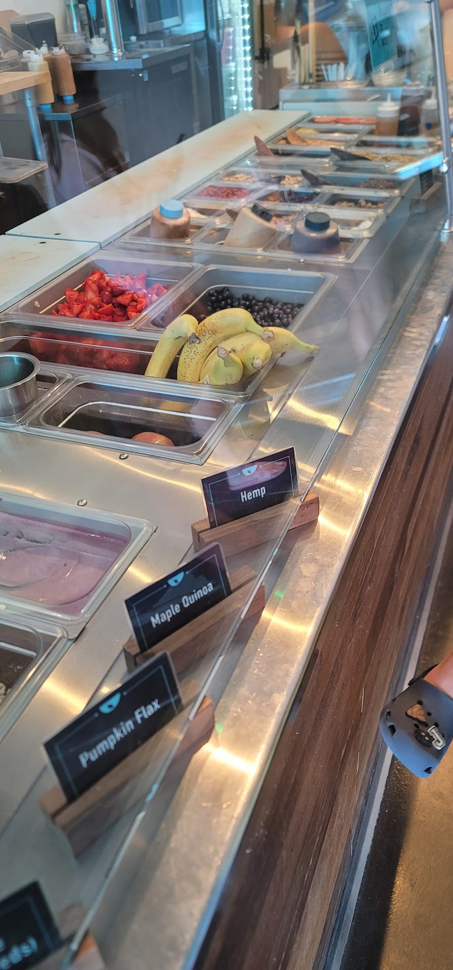 Honestly, the service has gone way down at blue bowl. I used to come here all the time and every single time I came here the service was amazing and the bowls were amazing. Today when I came in, I wasn’t really greeted and when I was asked what I wanted he didn’t really give me the amount that I usually receive when I order a medium it was mainly açaí not much blue coconut. So I asked him for some extra of the blue coconut and he remade it, but when he put the granola on top, he didn’t really put much granola at all and I whenever I come here they’re usually more generous with the granola. When I got to the fruit toppings, I was just a little bit thrown off because I actually wanted to order the warm oats on top too, but he didn’t ask me if I wanted any other toppings so I would’ve felt bad if I had him remake the bowl again since he had mentioned that he couldn’t give me anything on the side so I didn’t even want to order the oats at that point because then he would’ve had to remake a third bowl so I was a little bit unsatisfied with this experience at this location, I didn’t really get what I wanted and I didn’t really get much granola and my whole bowl was kind of just all frozen bases and I also noticed that there were many blueberries that had gone bad in my bowl and the bananas he put in were like sitting out and brown not freshly cut so yeah this is just an update on the service and the quality of the food. I’ve never really this experienced this with blue bowl so I just wanted to...